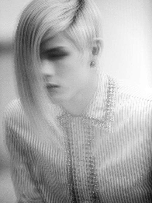 Daniel Aleksić black and white fashion portrait by Ferran Casanova in Barcelona studio