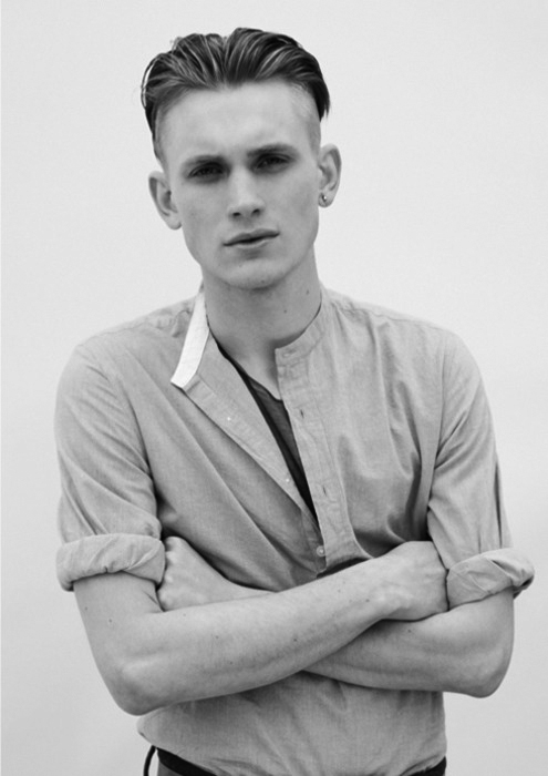 Daniel Aleksić black and white fashion portrait by Ferran Casanova in Barcelona studio