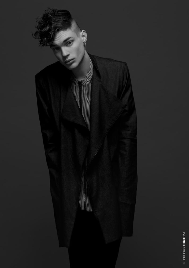 El modelo Chris Tanner luce los diseños de Rad Hourani en este editorial fotografiado por Anthony Meyer y Benjamin Brouillet para el último número de F/HOMME.