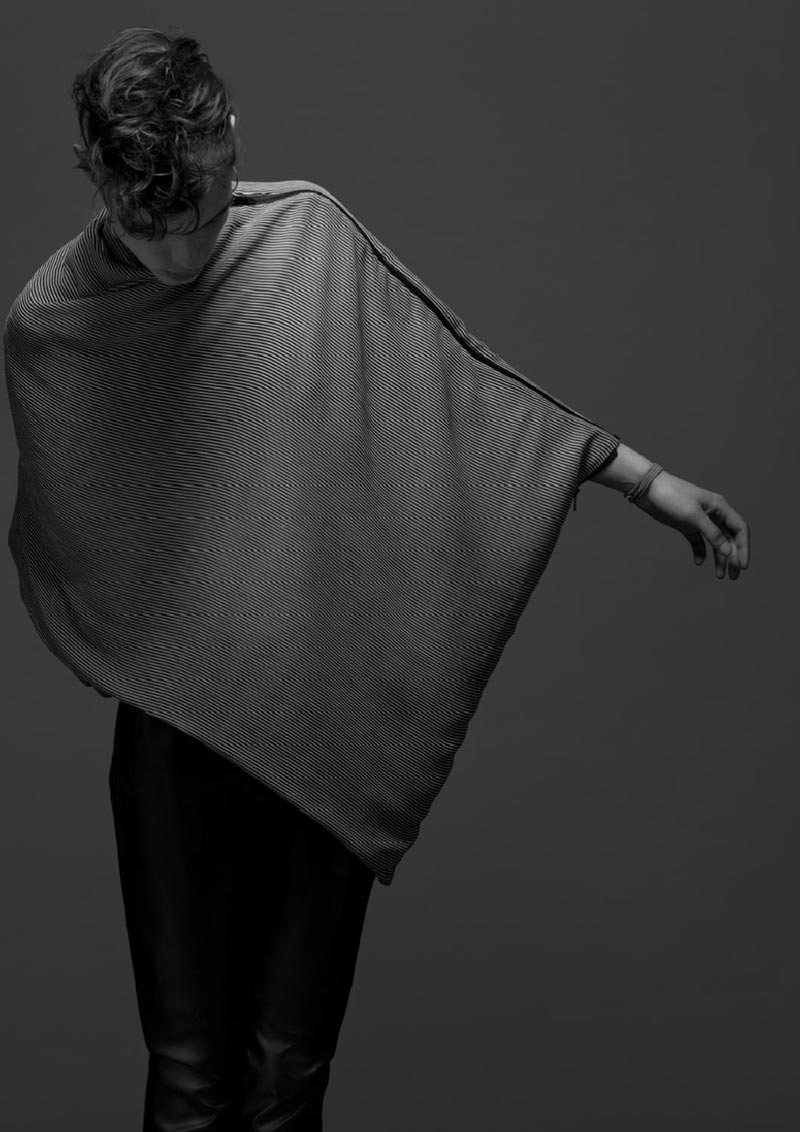 El modelo Chris Tanner luce los diseños de Rad Hourani en este editorial fotografiado por Anthony Meyer y Benjamin Brouillet para el último número de F/HOMME.