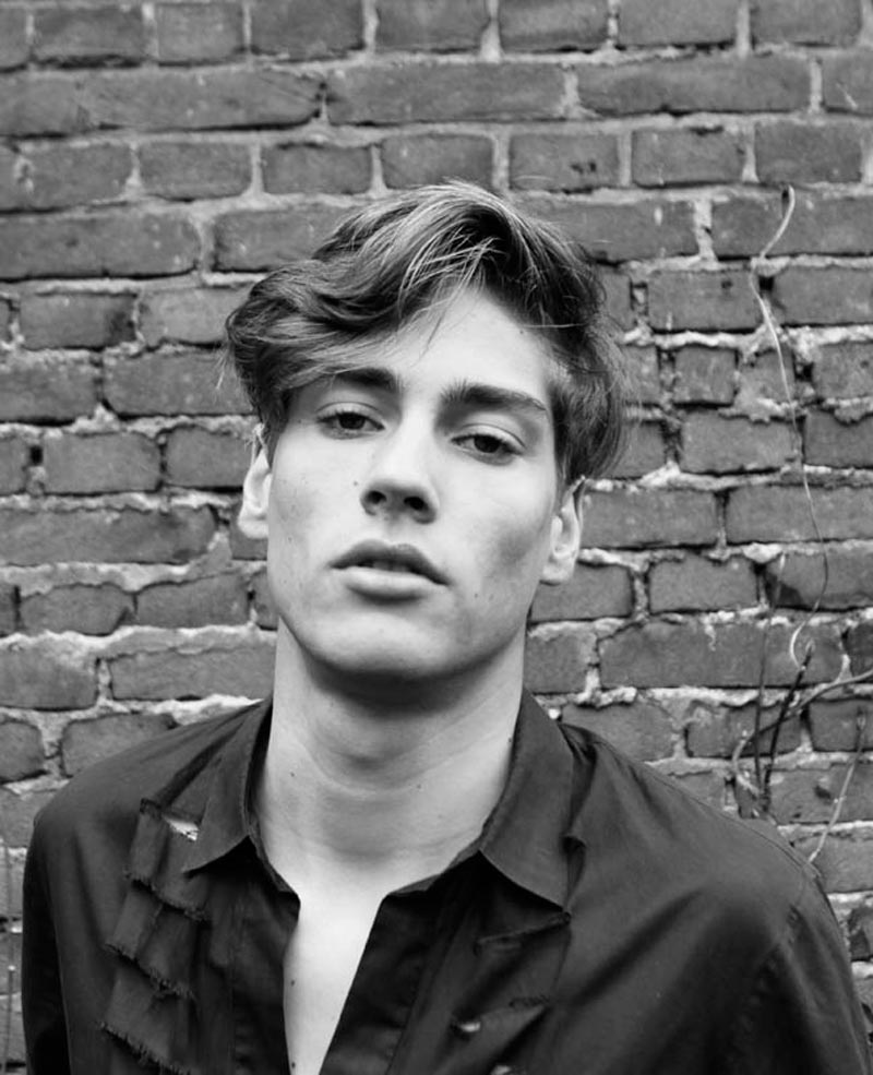 Daniel Aleksić black and white fashion portrait by Ferran Casanova in Barcelona studio
