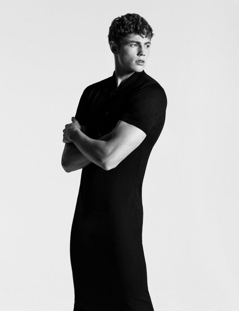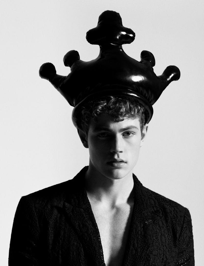 Tom Barker captured by Aingeru Zorita and outfitted by Way Perry with pieces by Comme de Garçons for Wonderland Magazine.