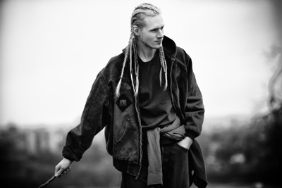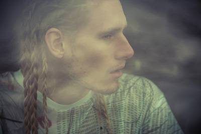 Daniel Aleksić black and white fashion portrait by Ferran Casanova in Barcelona studio