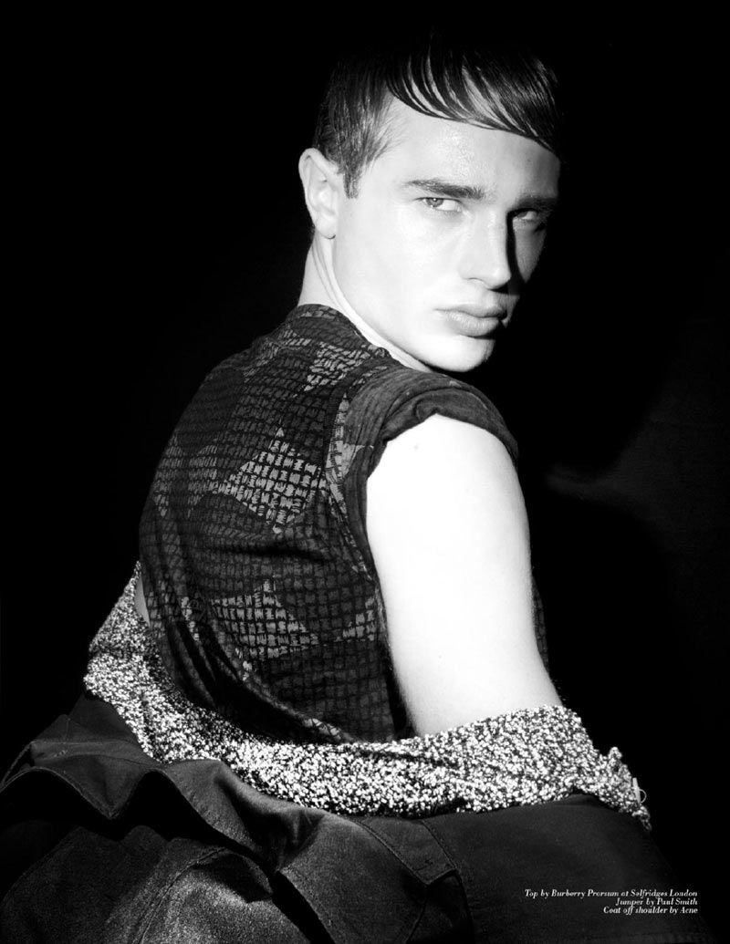 Daniel Aleksić black and white fashion portrait by Ferran Casanova in Barcelona studio