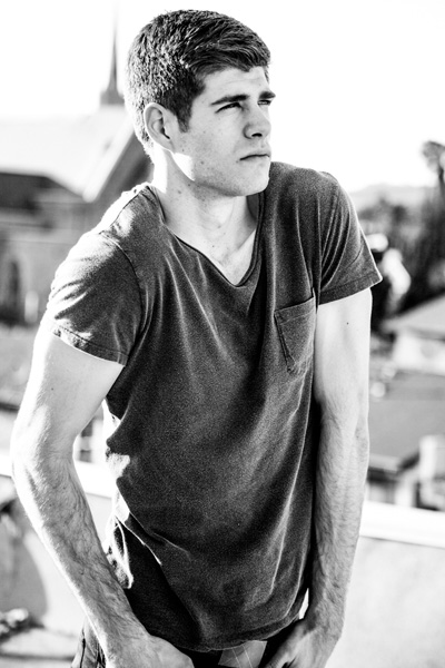 Daniel Aleksić black and white fashion portrait by Ferran Casanova in Barcelona studio
