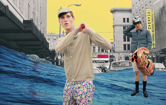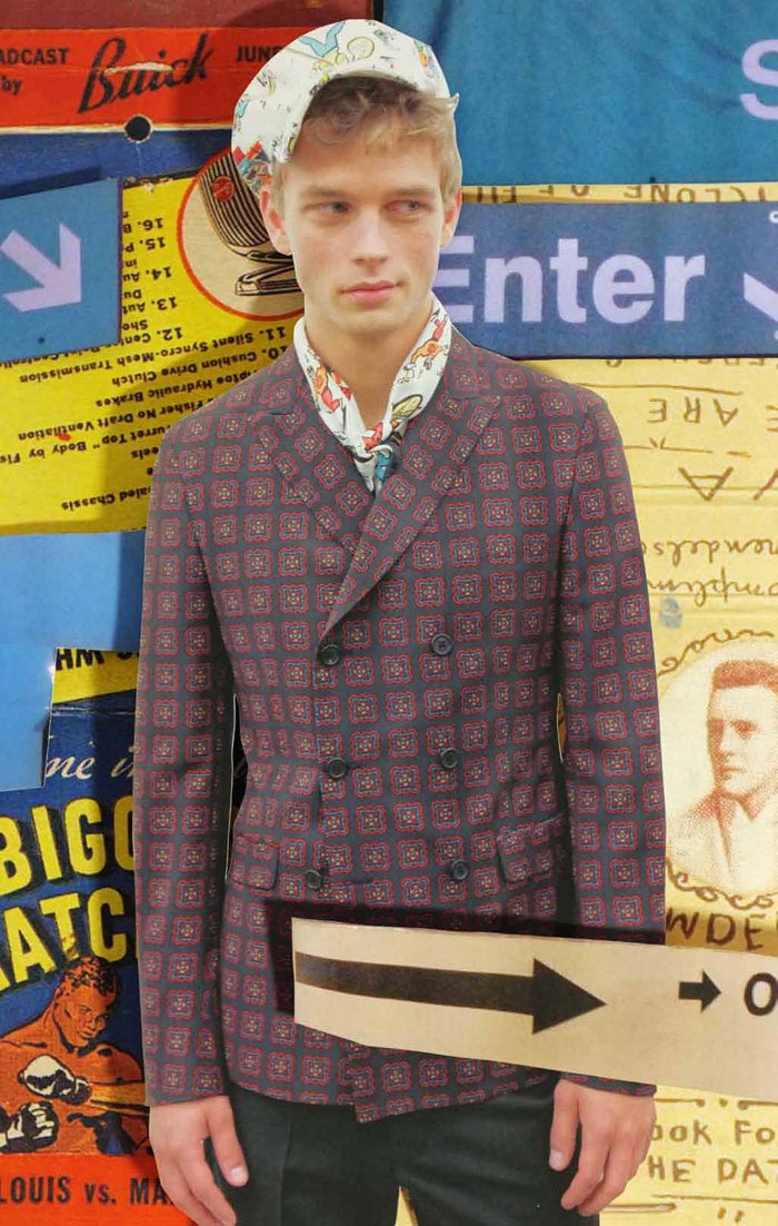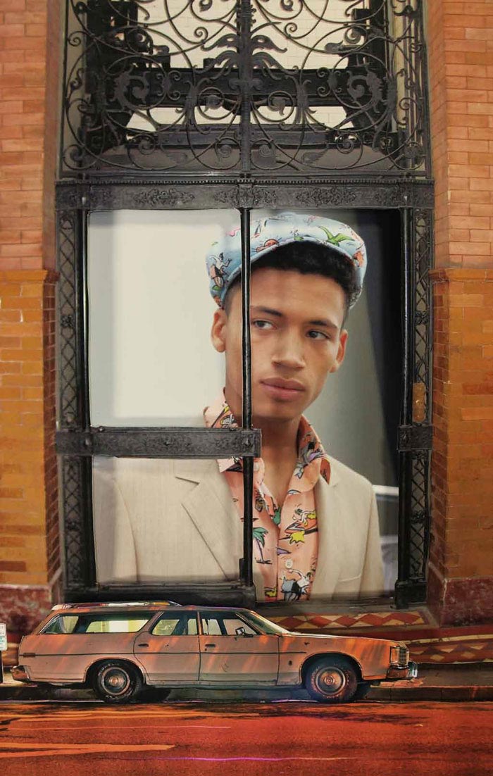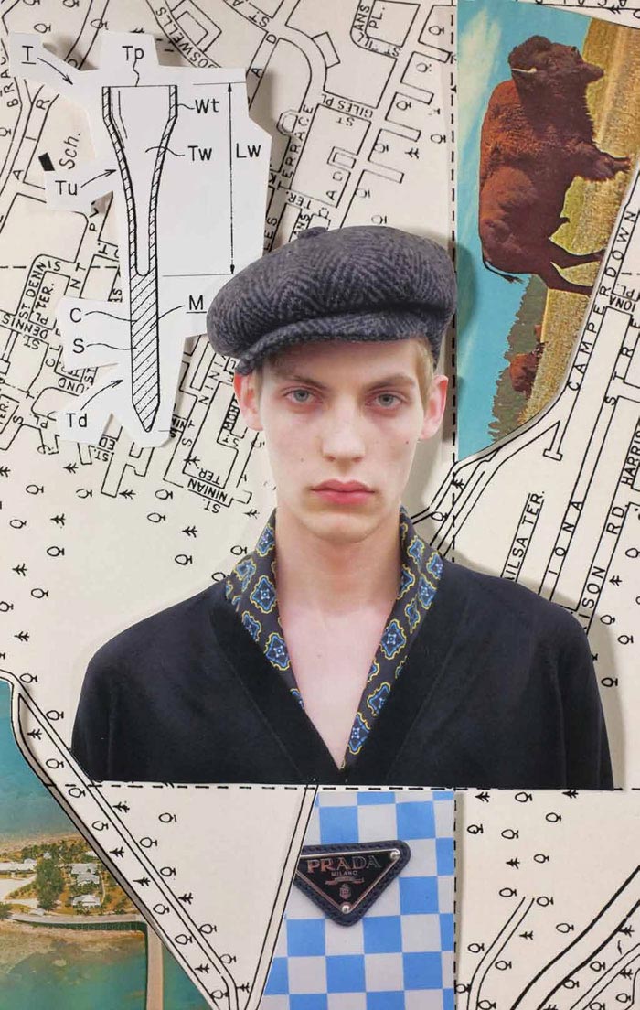 Abiah Hostvedt, Baptiste Radufe, Bastiaan Ninaber, Benjamin Eidem, Christian Ochsenfahrt, Clément Chabernaud and Johnny George photographed by Phil Meech for Prada Real Fantasies Spring/Summer 2012 lookbook with Art Work by Jeroen Koolhaas and Lok Jansen.