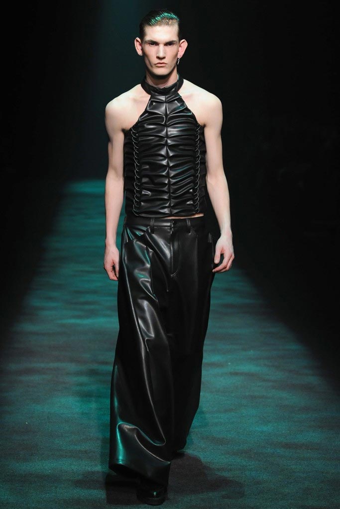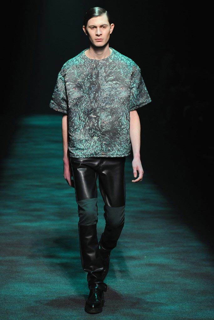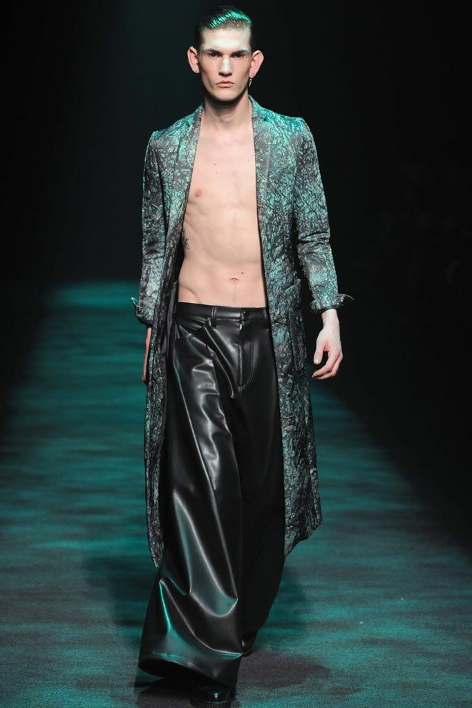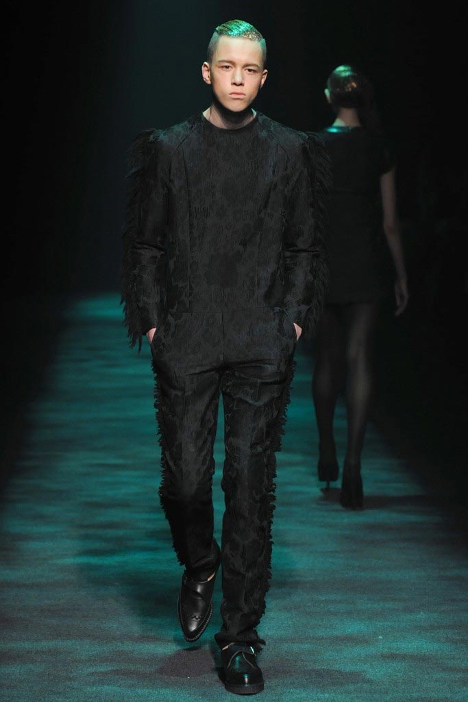 Christian Dada presented his dark Fall/Winter 2012 collection where a urban-goth mood penetrated through sci-fi patent leather, satchels, kaleidoscopic shimmers and a slight passé silhouette. There where some very impressive pieces although a bit stagy yet the knitwear felt comfortable enough to take them from runway to street.