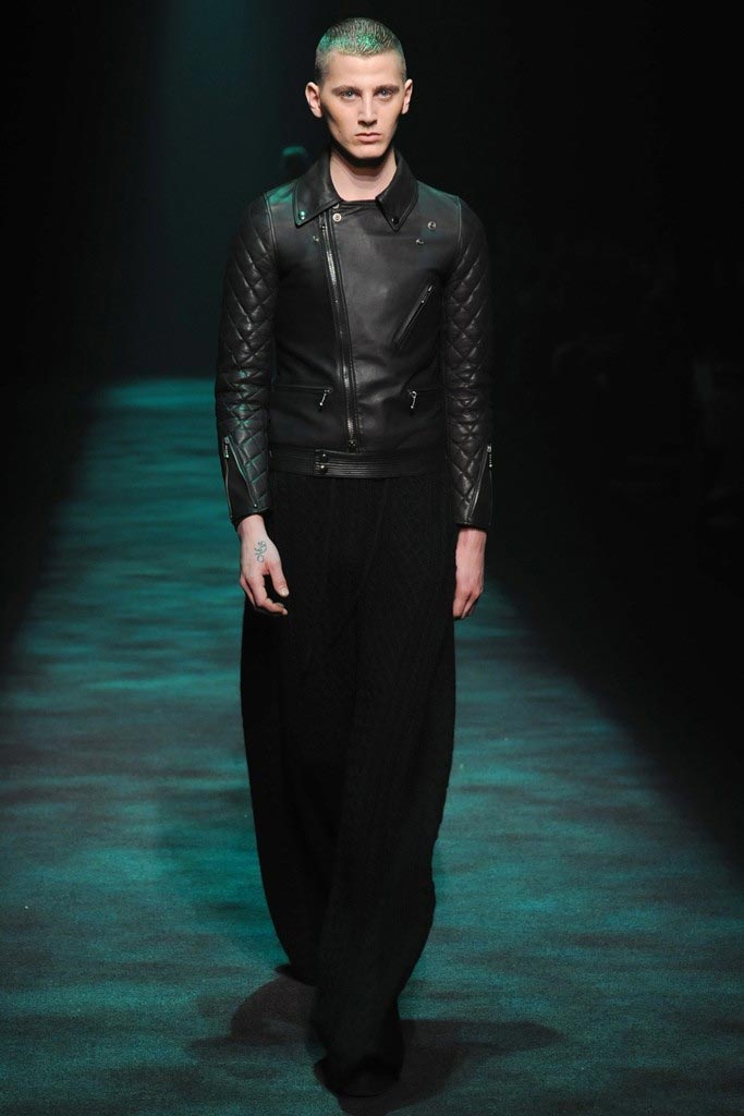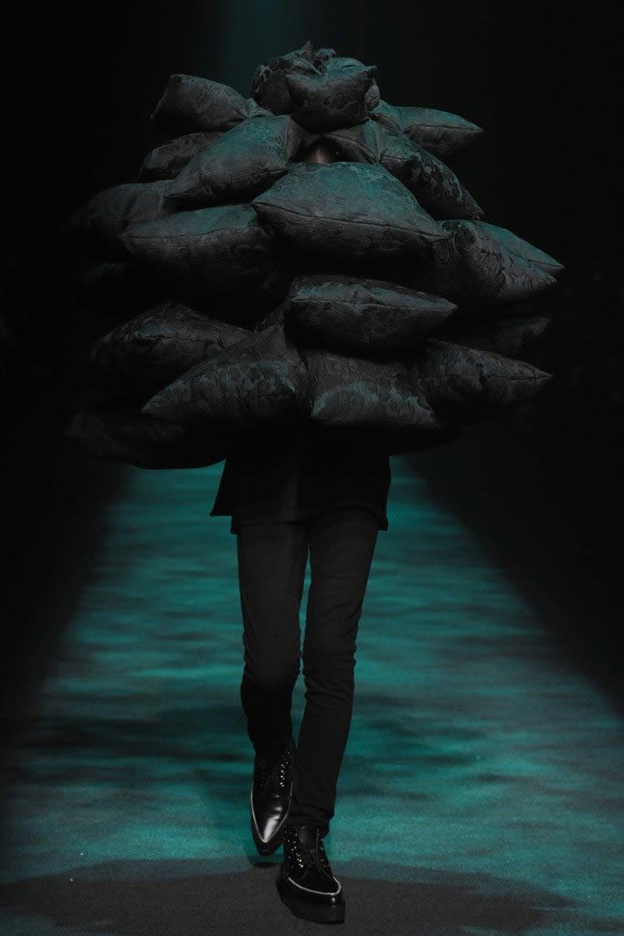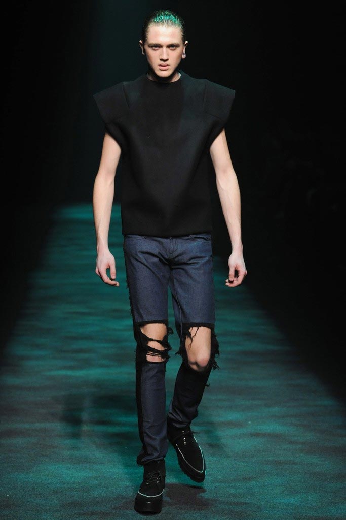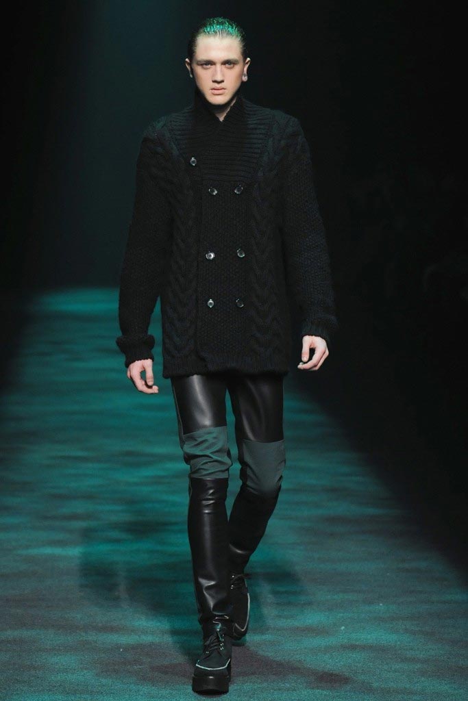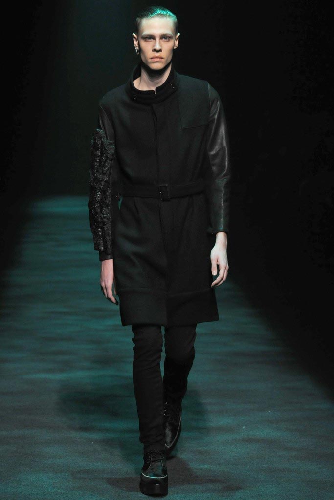 Christian Dada presented his dark Fall/Winter 2012 collection where a urban-goth mood penetrated through sci-fi patent leather, satchels, kaleidoscopic shimmers and a slight passé silhouette. There where some very impressive pieces although a bit stagy yet the knitwear felt comfortable enough to take them from runway to street.