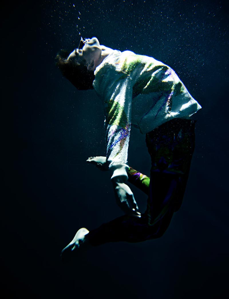 Bastiaan Van Gaalen immerses himself in a pool to create this images for Numéro Homme, photographed by Pierre Debusschere inspired by Zodiac sign Aquarius. All styled by Jean Michel Clerc with pieces from Prada to Louis Vuitton, Alexander McQueen, Wooyoungmi, Mugler, Versace, Raf Simons…