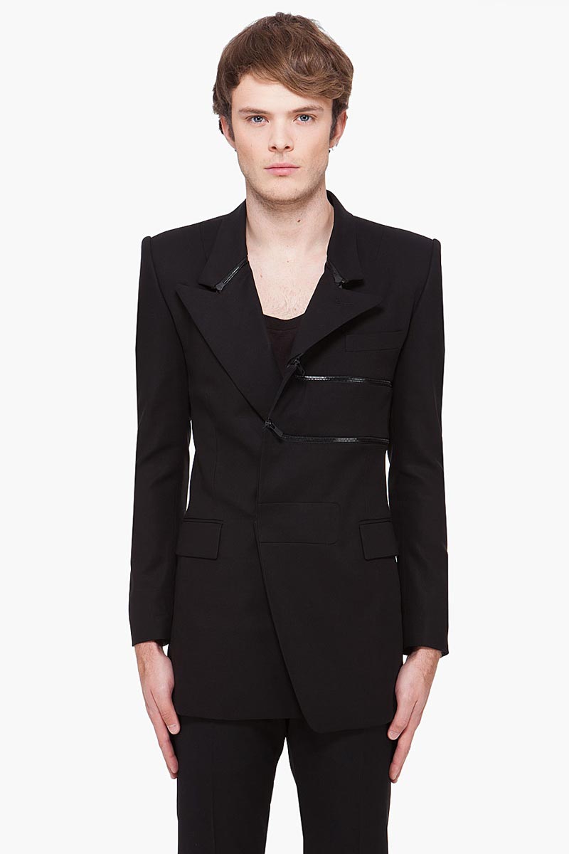 SSENSE introduces Juun J. menswear for Spring/Summer 2012. This season, Juun J. presented a predominately monochromatic palette with gold accents. Standout pieces from our Spring/Summer ‘12 buy include the Beige Trench Coat with gold hardware and exaggerated notched lapel collar, the Ivory Biker jacket with gold zip detailing, and the statement making Bi-Color Shirt.