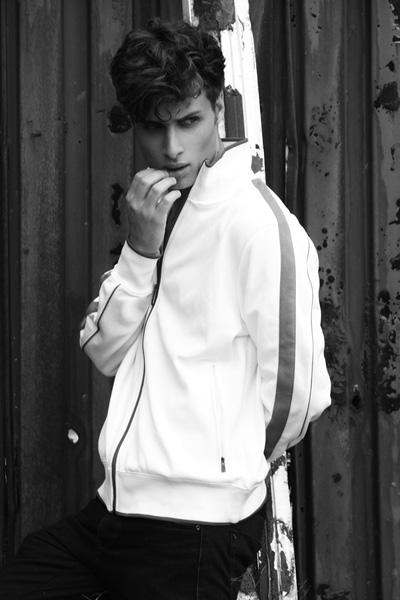 Daniel Aleksić black and white fashion portrait by Ferran Casanova in Barcelona studio
