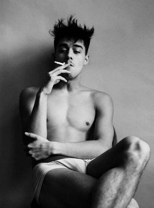 Daniel Aleksić black and white fashion portrait by Ferran Casanova in Barcelona studio