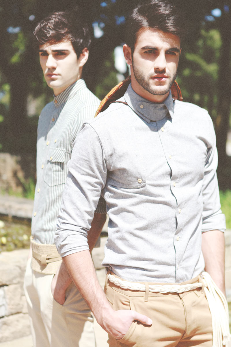 Diego C. and Andres M. (Trend Models) photographed by Carlos Moreno and styled by Montse Márquez for FUCKINGYOUNG! The series draws inspiration from Japan’s 19th century rural environment. Earthy hues and natural fabrics stripped bare from ornamentation, capture the relaxed lifestyle of farmers and their locus amoenus.