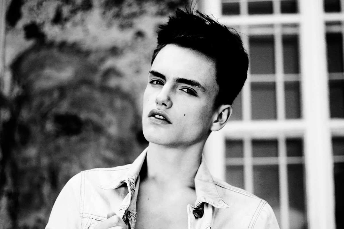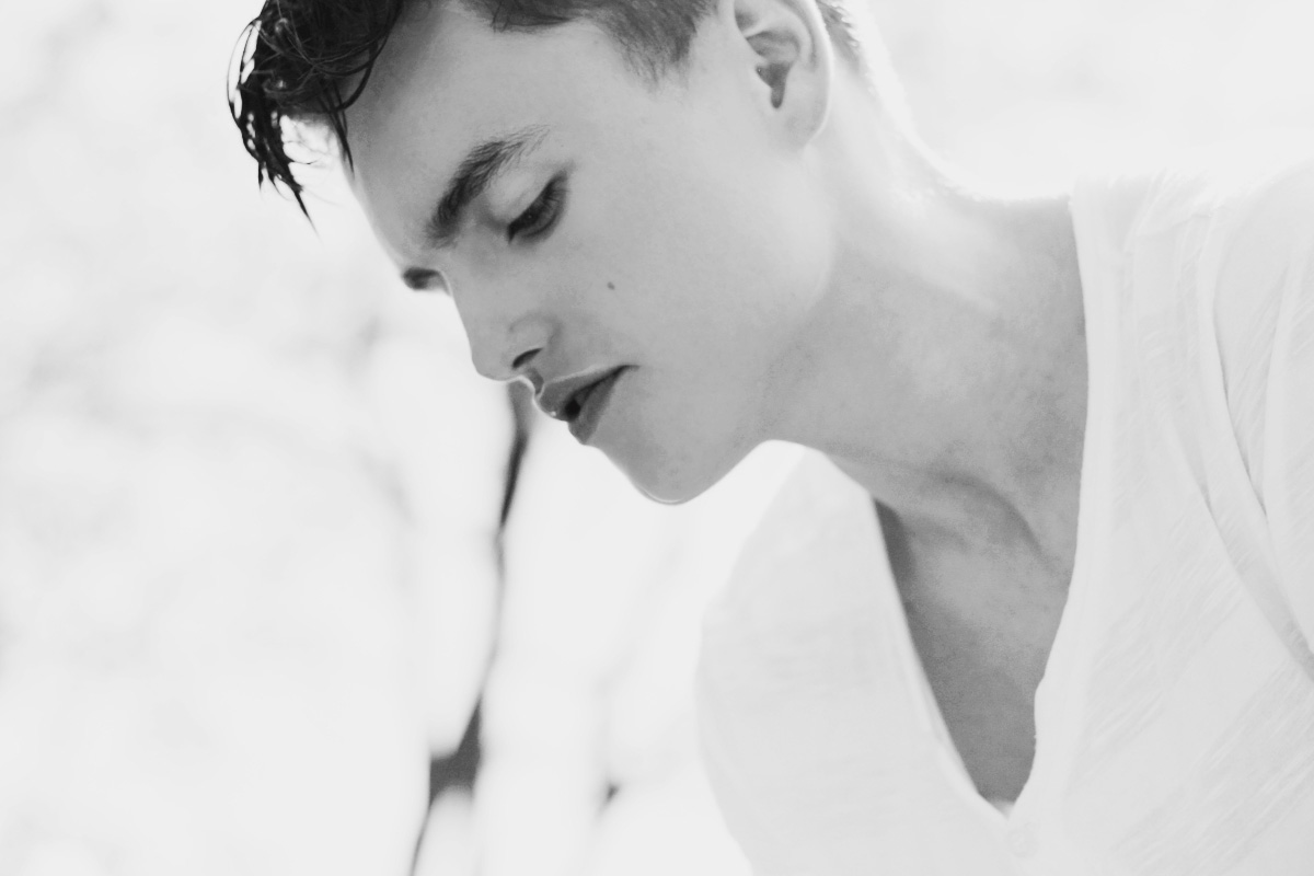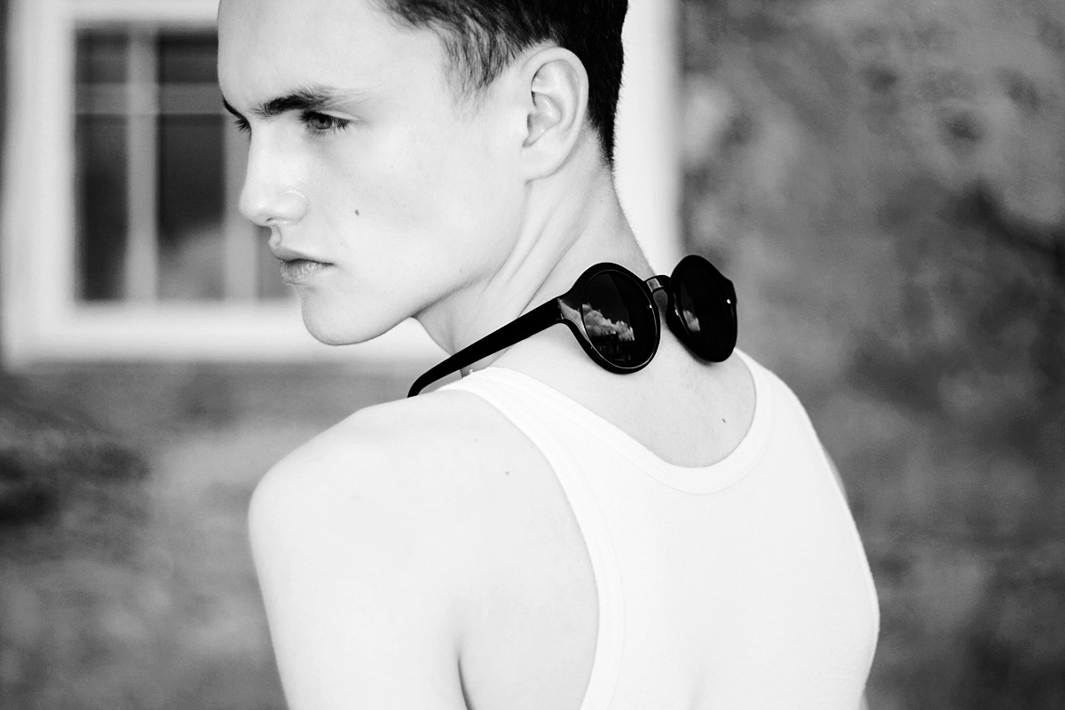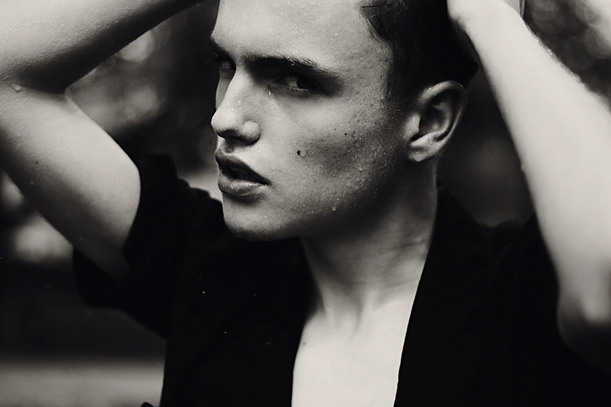 Daniel Aleksić black and white fashion portrait by Ferran Casanova in Barcelona studio