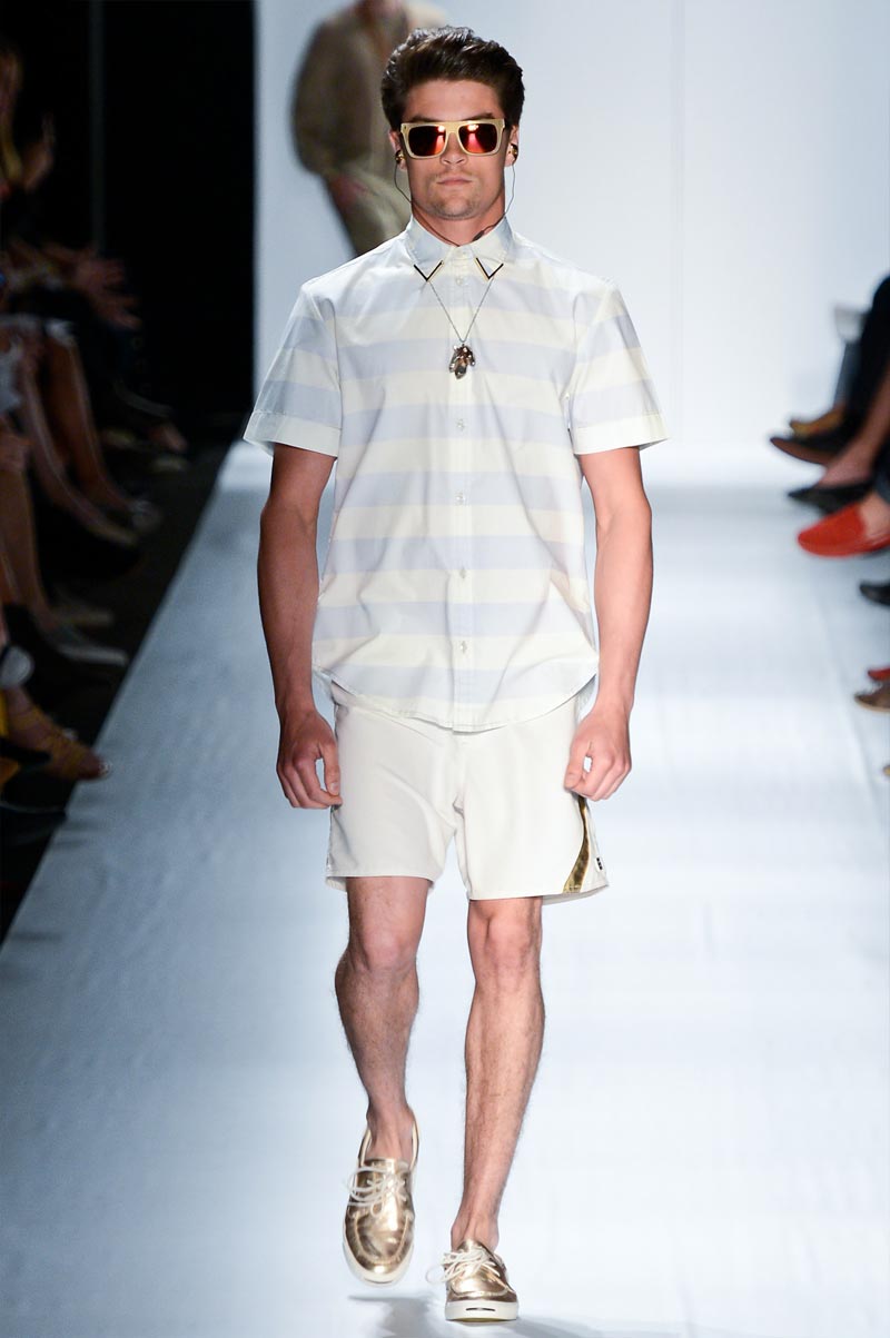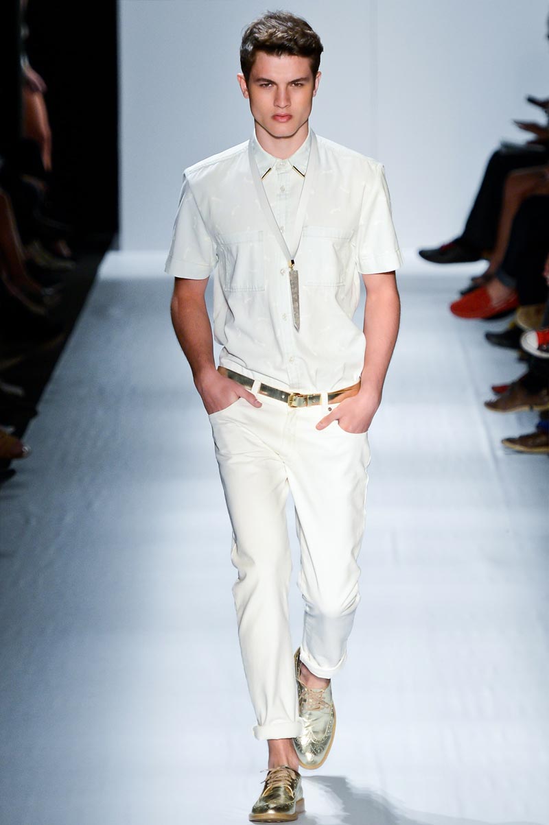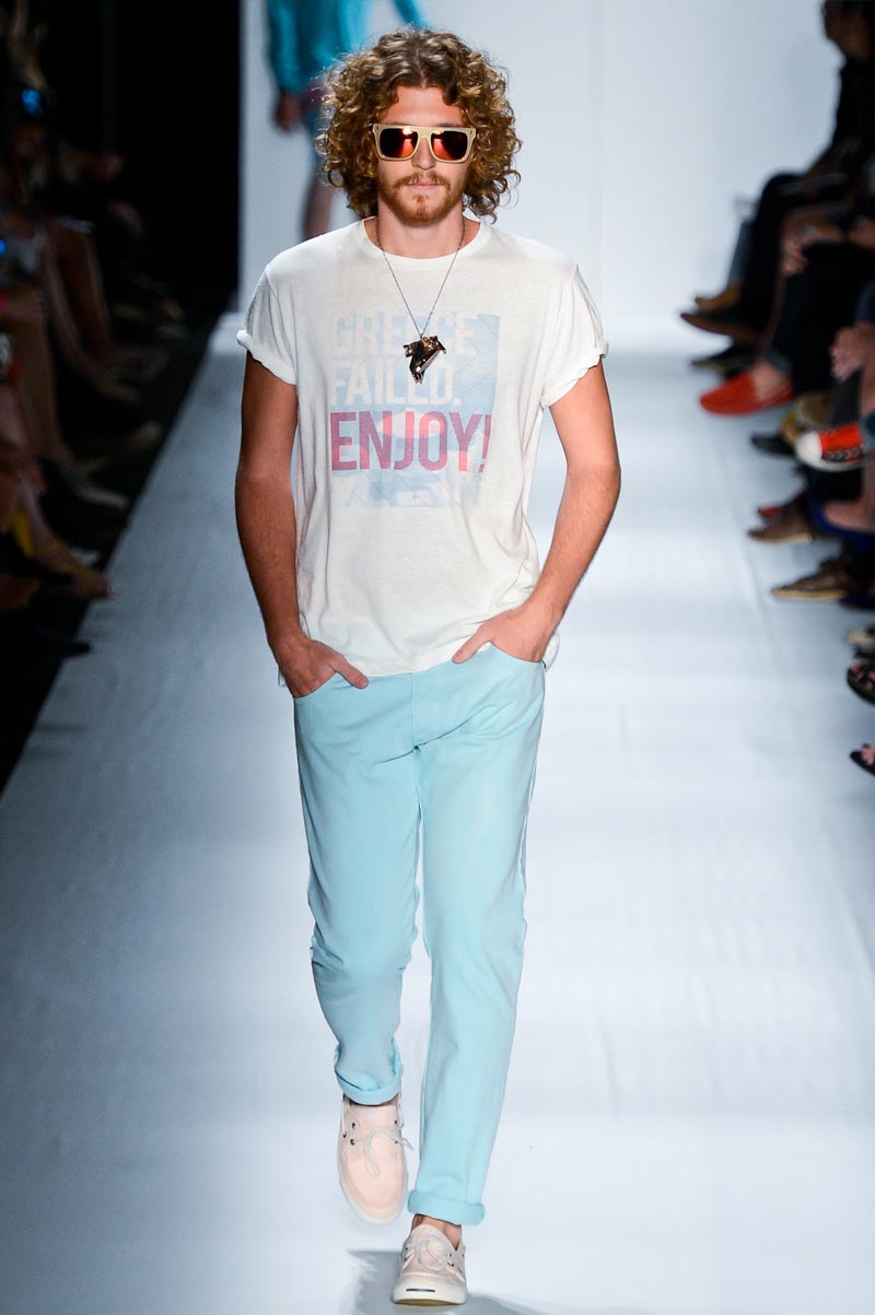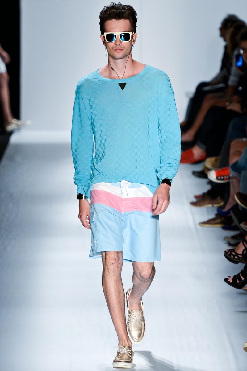 Ausländer gave us ice cream hues for Spring/Summer 2013. Florals, strips and golden details brought spring back with a relaxed silhouette accessorized with cristal rings and flashy men clutches. Um fresh!