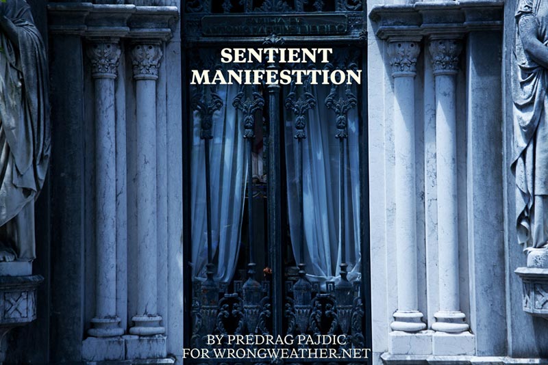 The strange thing about sentience is that it embodies one’s intrinsic potential for the achievement of enlightenment and until one is faced with such a being or understanding, any concept of perfection or purity or even beauty is marred by the conditions of the flesh and this life-state. He thought he espied angel wings from the shoulders of this echo of his own likeness and was aware that the edges of feathers seemed singed.