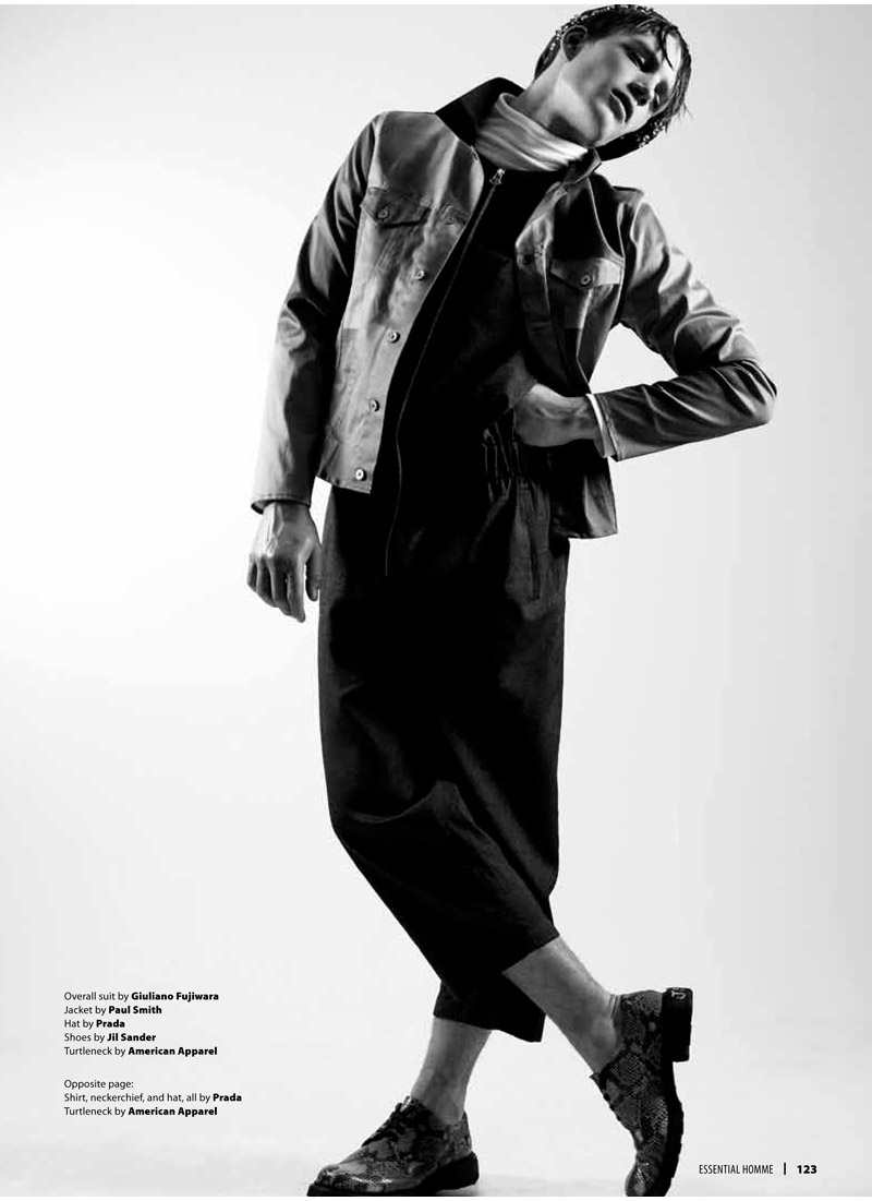 Florian Van Bael lensed by Saverio Cardia and styled by Lorenzo Posocco with pieces from Prada, Jil Sander and more, for Essential Homme’s latest issue.