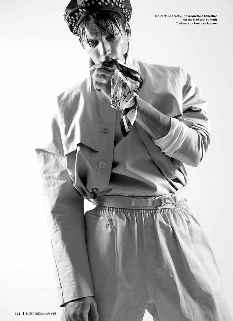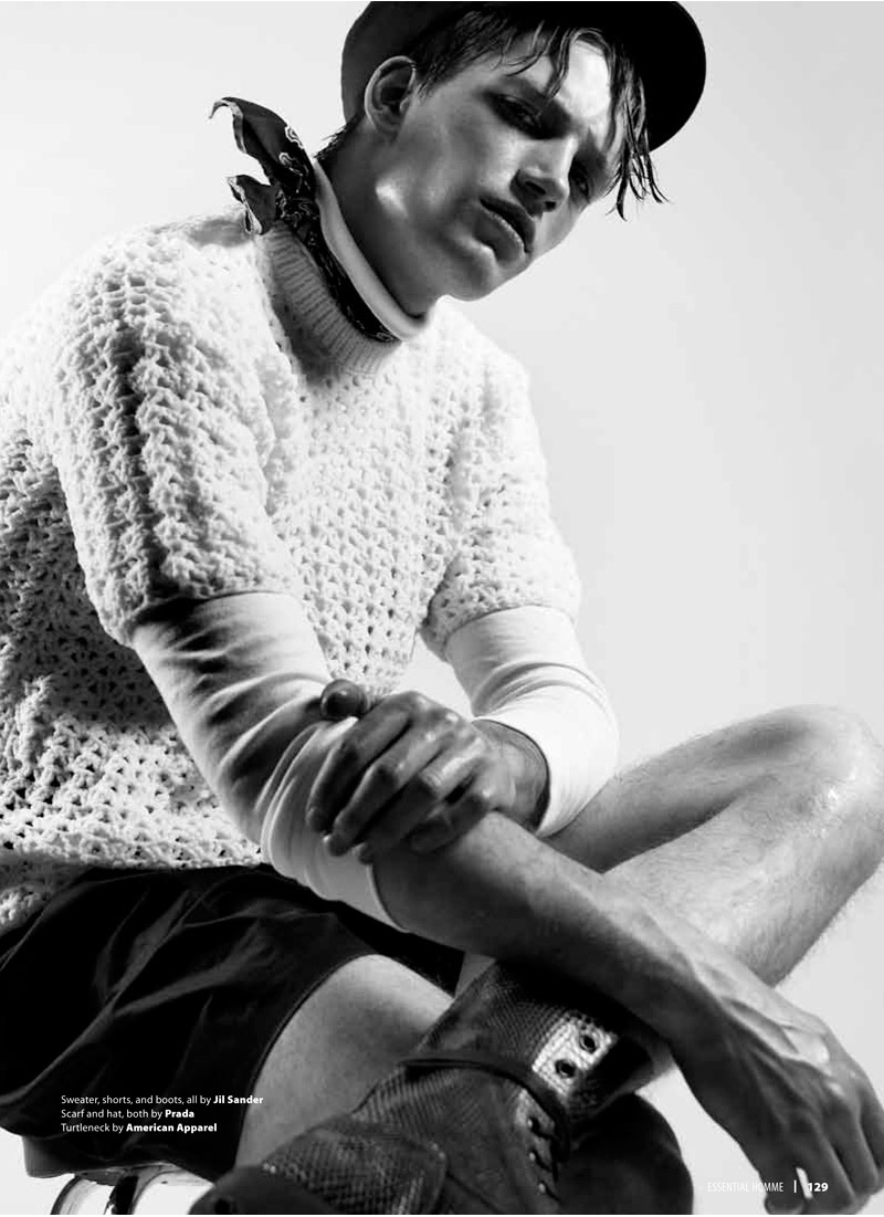 Florian Van Bael lensed by Saverio Cardia and styled by Lorenzo Posocco with pieces from Prada, Jil Sander and more, for Essential Homme’s latest issue.