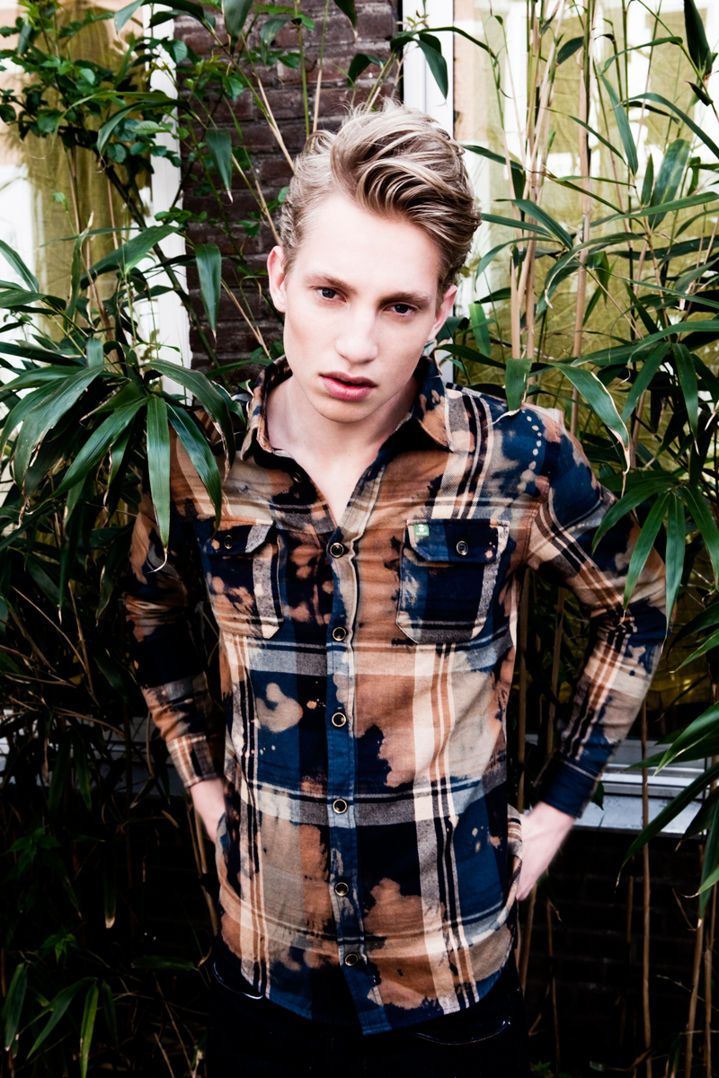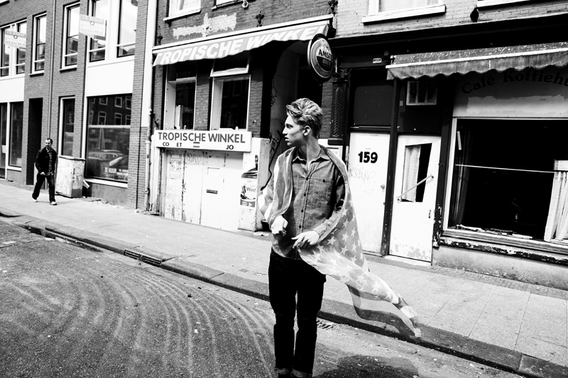 Noud photographed by Valentina Vos and styled by Inge de Lange with pieces by K.O.I. Kings of Indigo, EDWIN, Hema, Knowledge Cotton Apparel, Goosecraft, Reign, Zipper, in exclusive for FUCKING YOUNG!