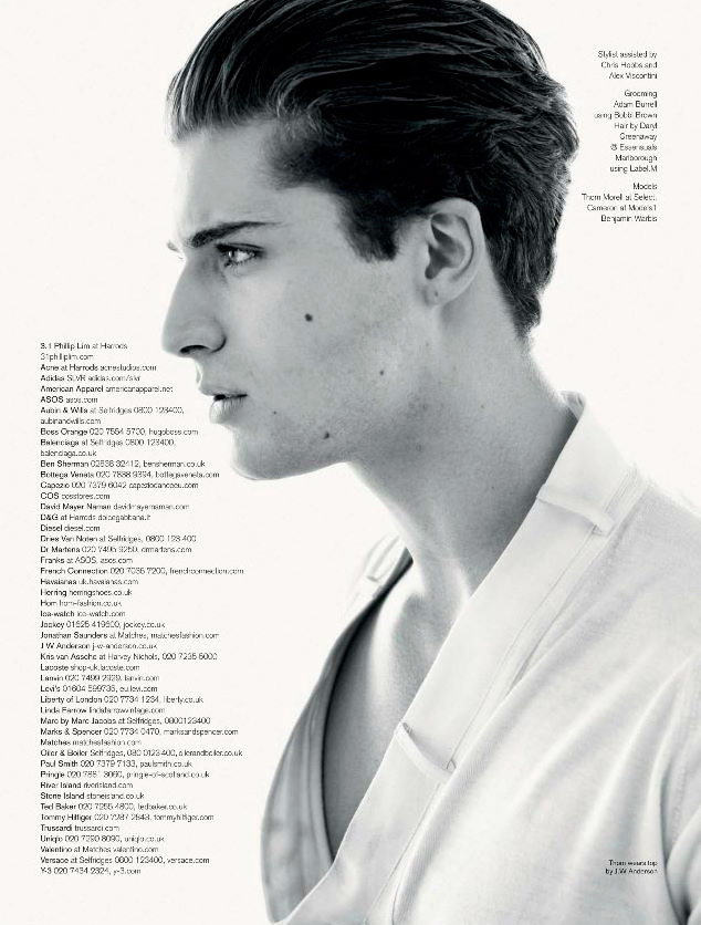 Benjamin Warbis, Cameron McMillan and Thom Morell photographed by Philip Riches and styled by Attitude fashion editor Frank Strachan for the June 2012 issue of Attitude magazine.