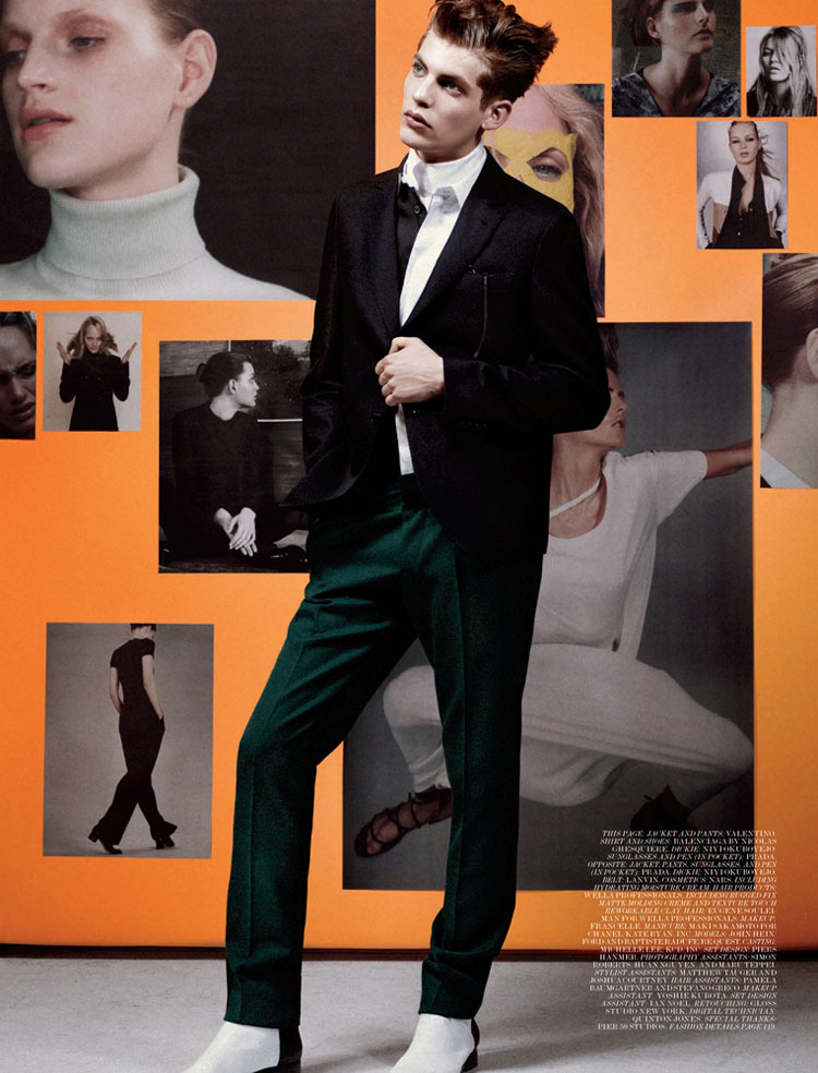 Baptiste Radufe and John Hein captured by Craig McDean and styled by Karl Templer with pieces from Prada, Calvin Klein, Lanvin and more, for the June/July 2012 issue of Interview magazine.