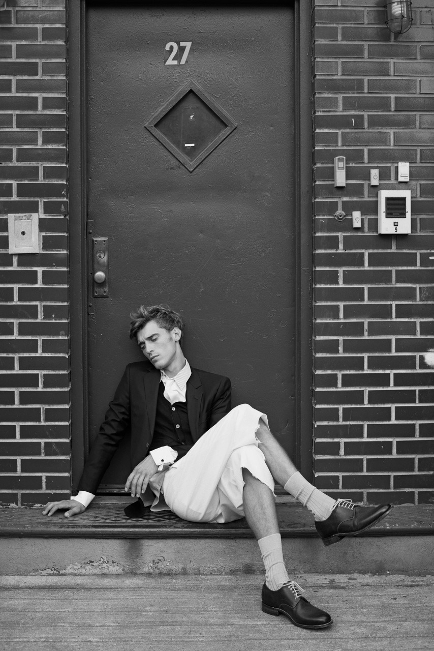 Top model Clément Chabernaud is elegant as always posing for a new series by Eric Guillemain capturing the new collection by Antonio Azzuolo.