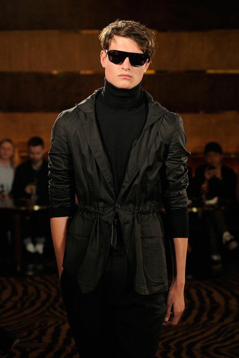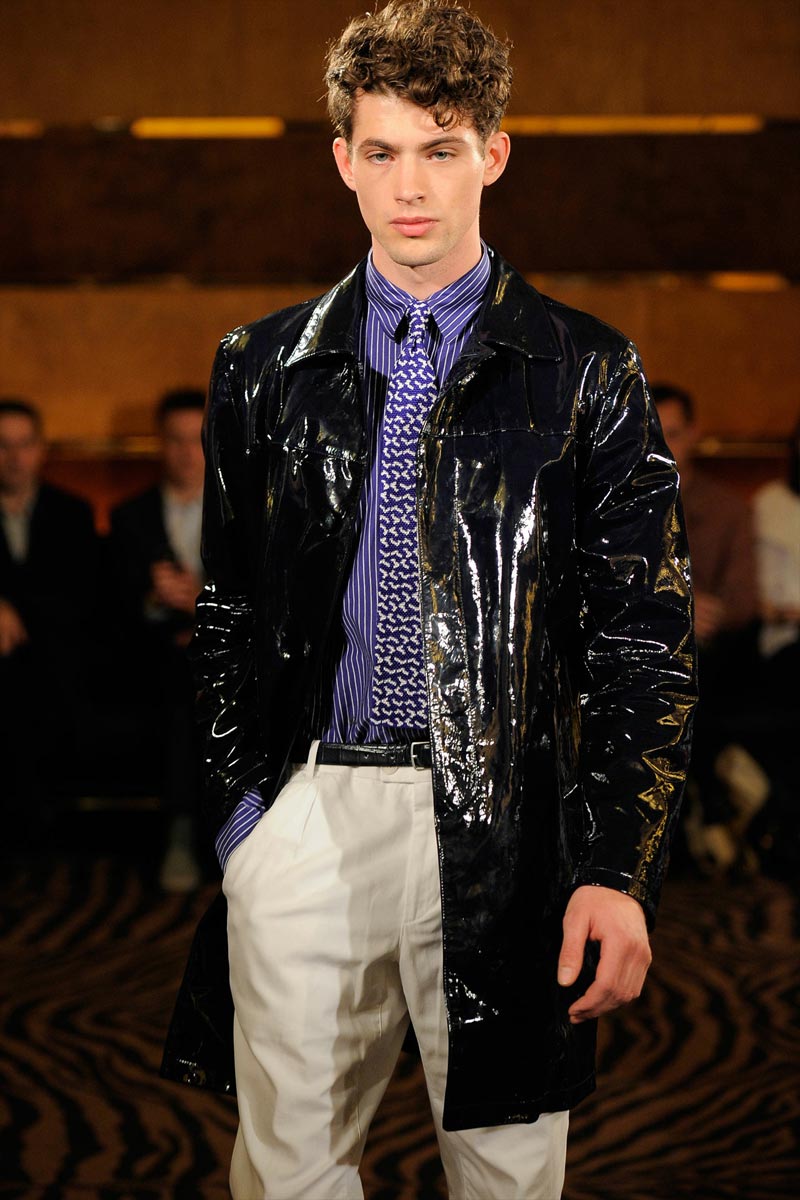 Wing collars included, Joseph Abboud delivered a 20’s inspired rampage where techno details rescued the vintage look from second-hand shop mortality. He opted for a small show presentation of its Spring/Summer 2013 offerings, with models occasionally looking like pristine preppy pastries or tennis referees from a very dapper period drama.
