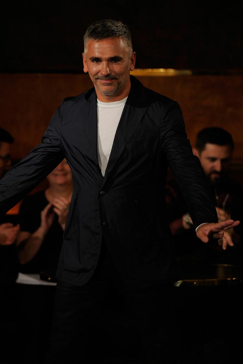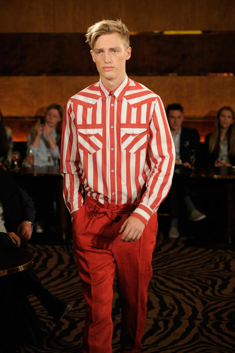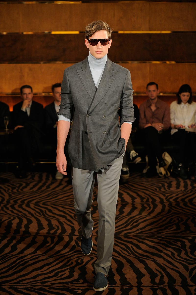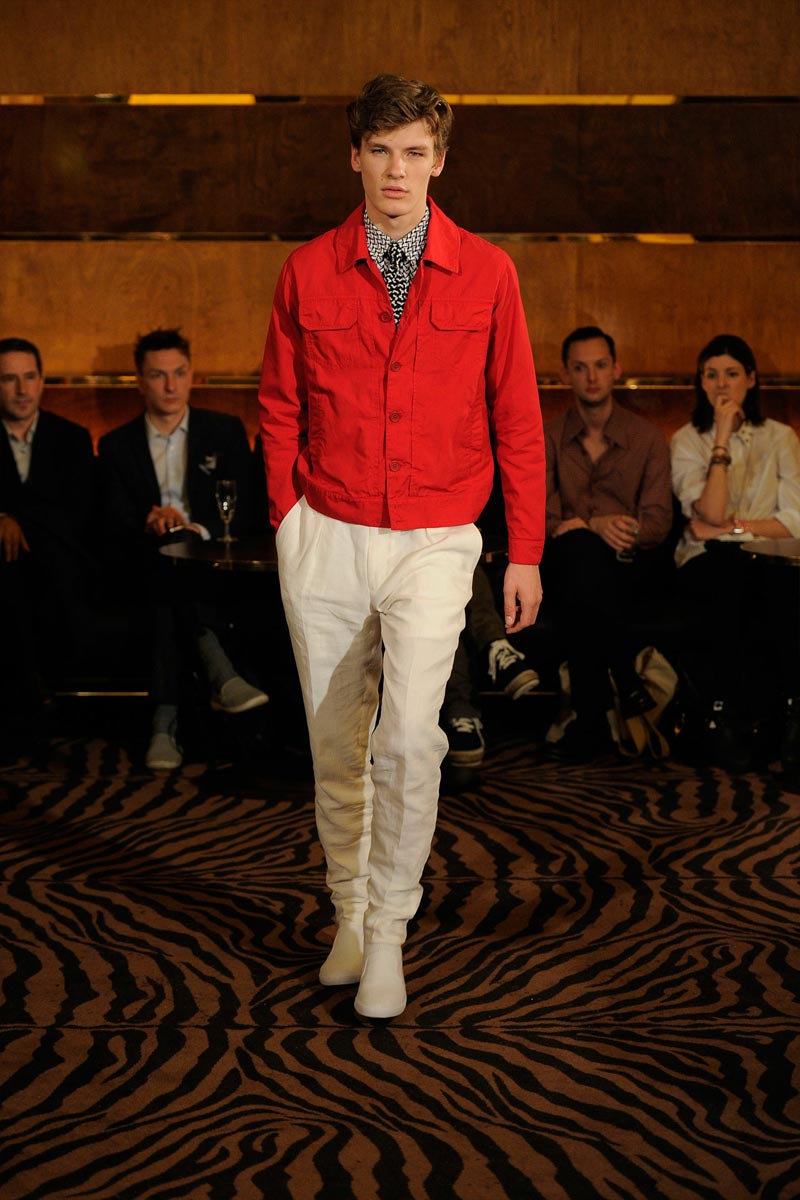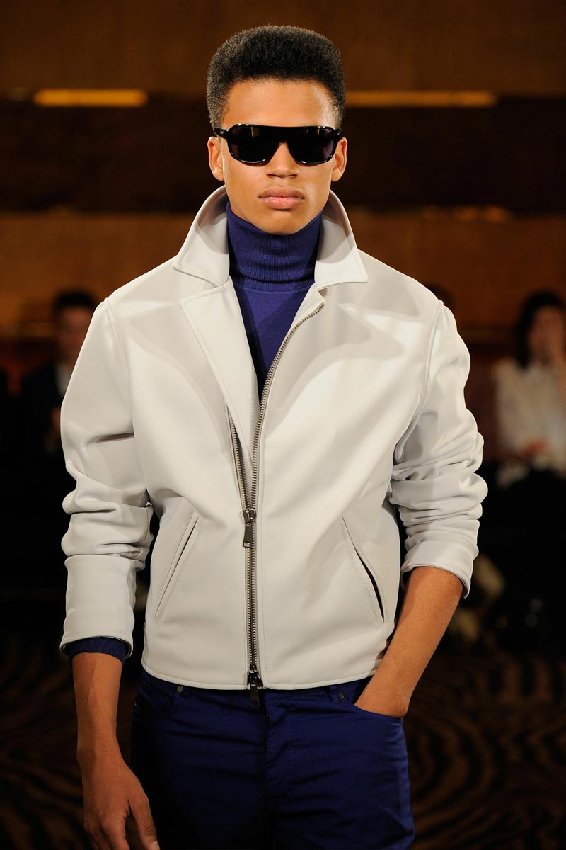 Wing collars included, Joseph Abboud delivered a 20’s inspired rampage where techno details rescued the vintage look from second-hand shop mortality. He opted for a small show presentation of its Spring/Summer 2013 offerings, with models occasionally looking like pristine preppy pastries or tennis referees from a very dapper period drama.