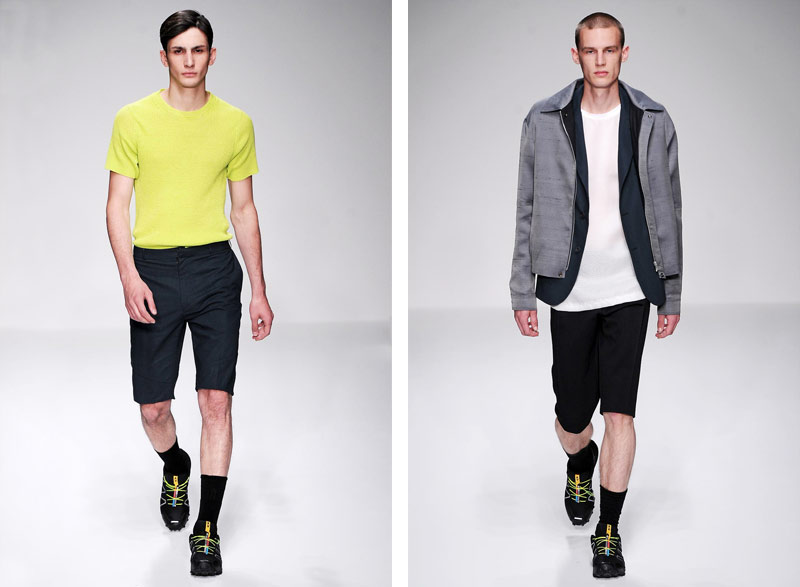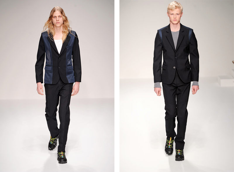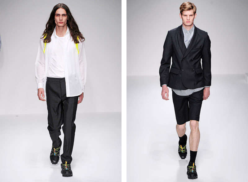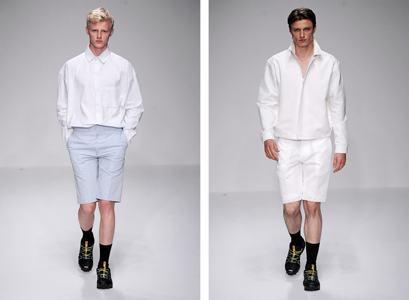 British designer Lou Dalton brings us her usual princely sportswear, where attention to detail in these Spring/Summer 2013 designs was “based around obsession and collecting.” Tailored bottoms were contrasted with slightly oversized nursing-home-escapee tops, and although there was the occasional flour top, the color palette remained safe and quite wintery.