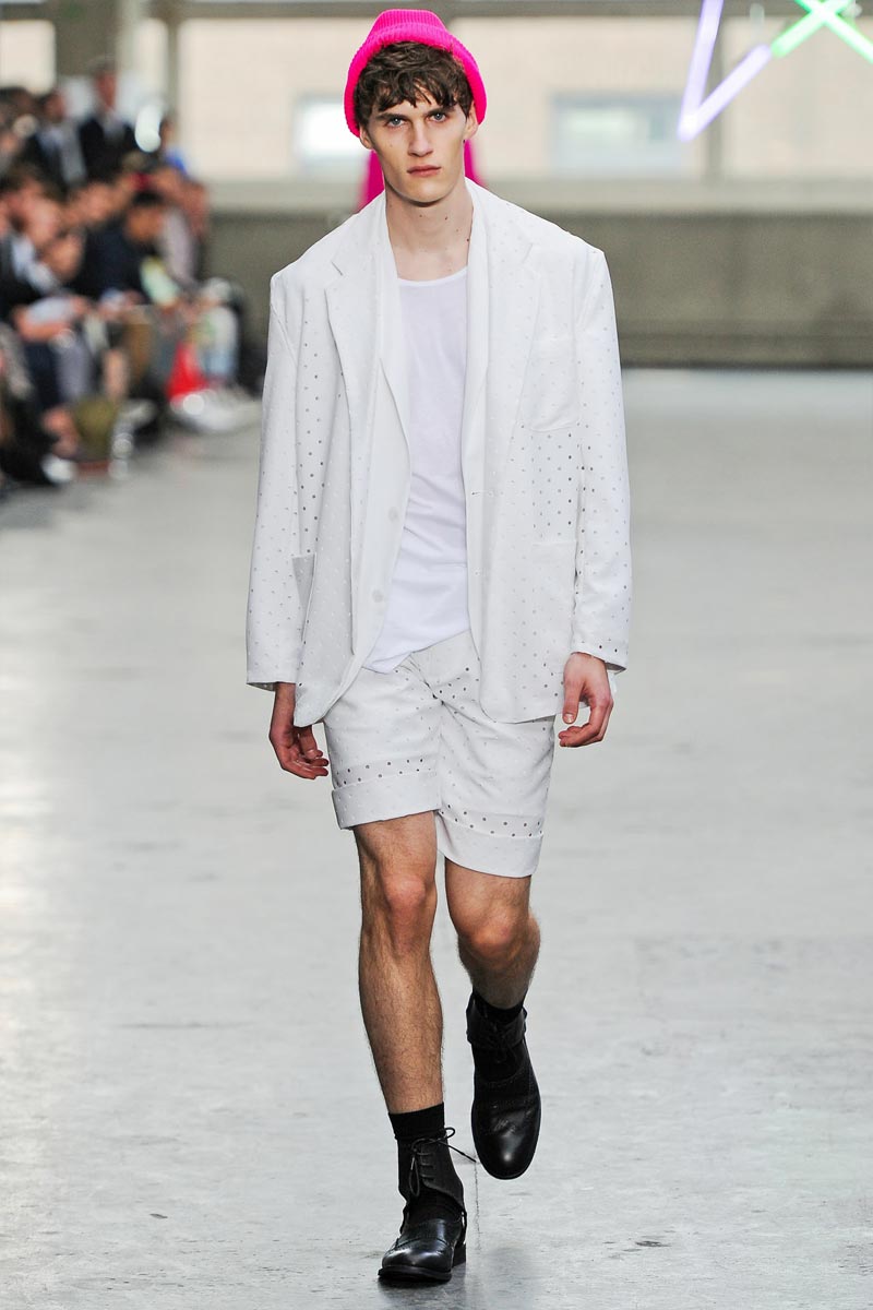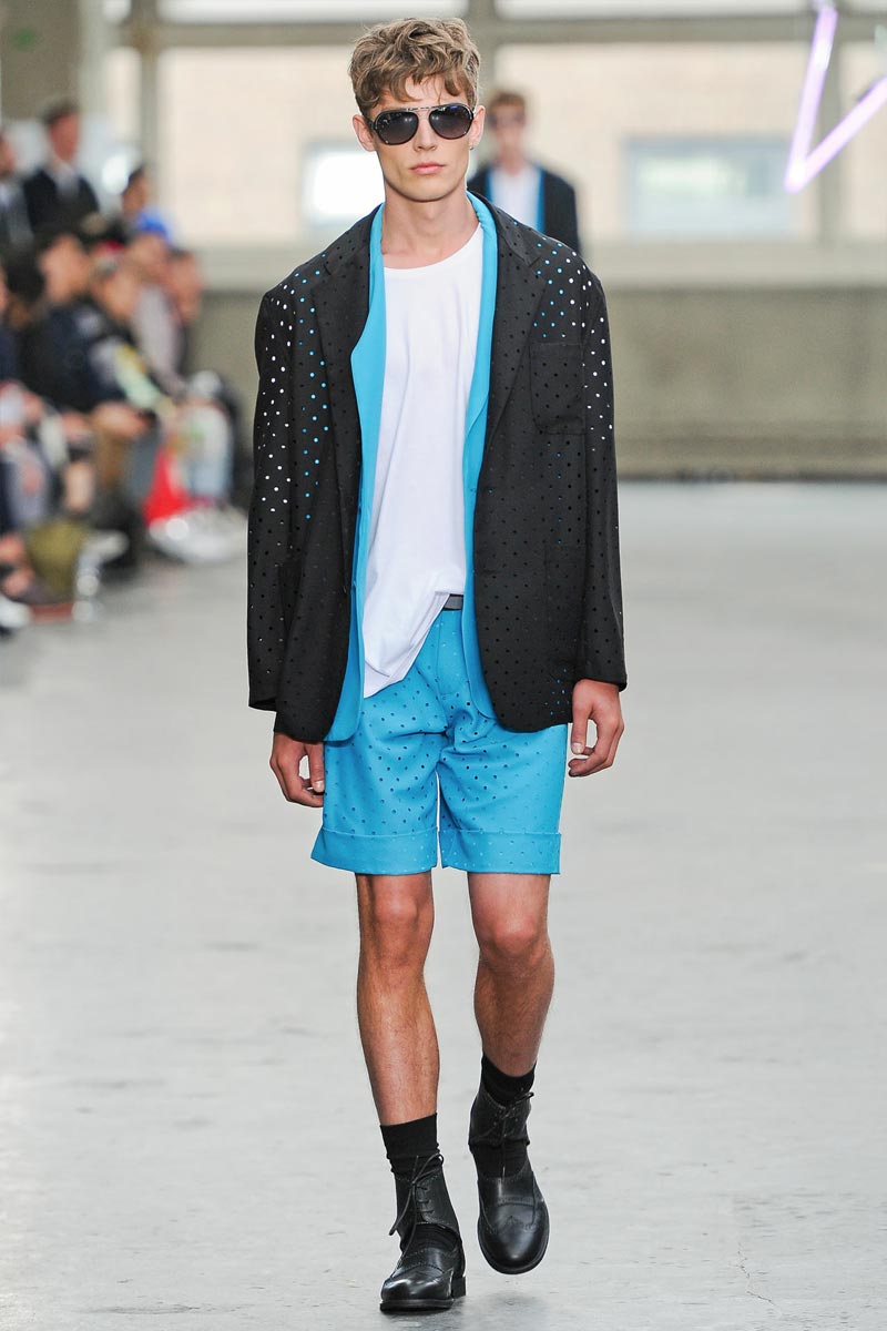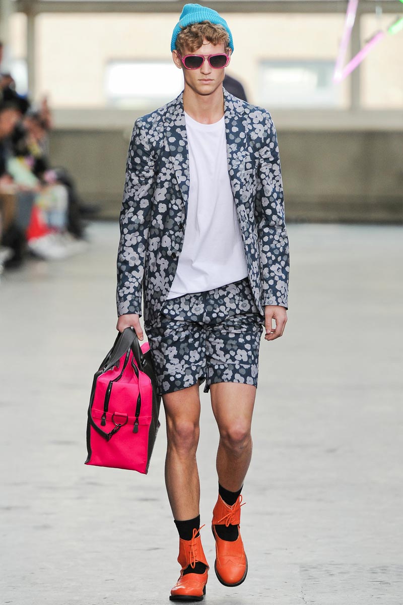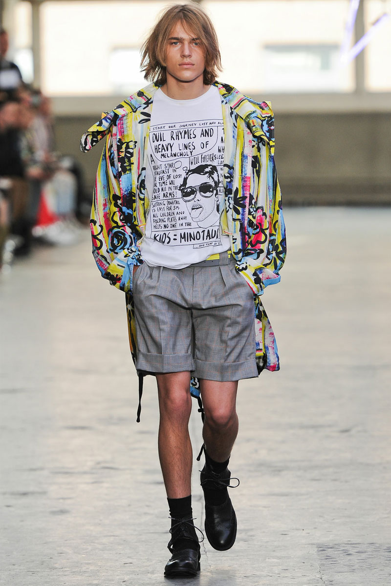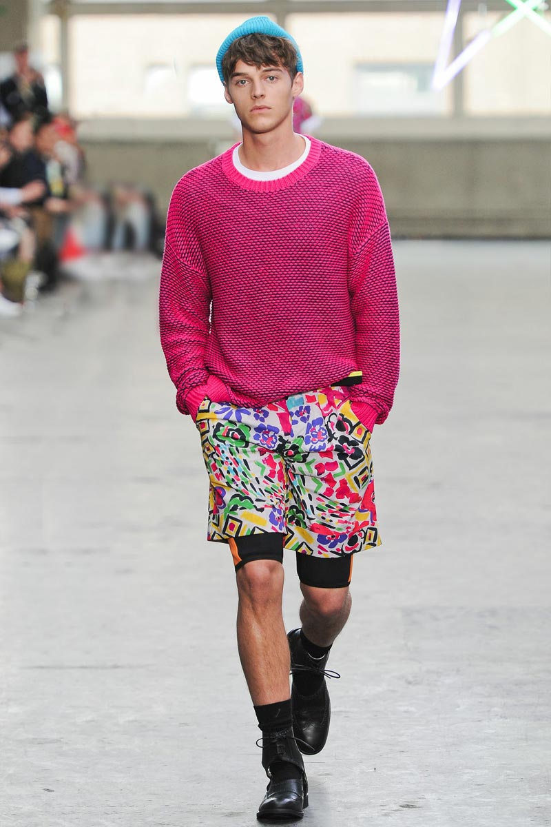 Kandinsky, football and fluor: what do these things have in common? Nothing – but that didn’t restrain fast fashion retailer TopMan from having them sent down a runway, in ubiquitous arty garments that were modeled by all the top coverboys. Victor Nylander’s lips be praised, as they never fail to distract from the drecktitude of a said collection!