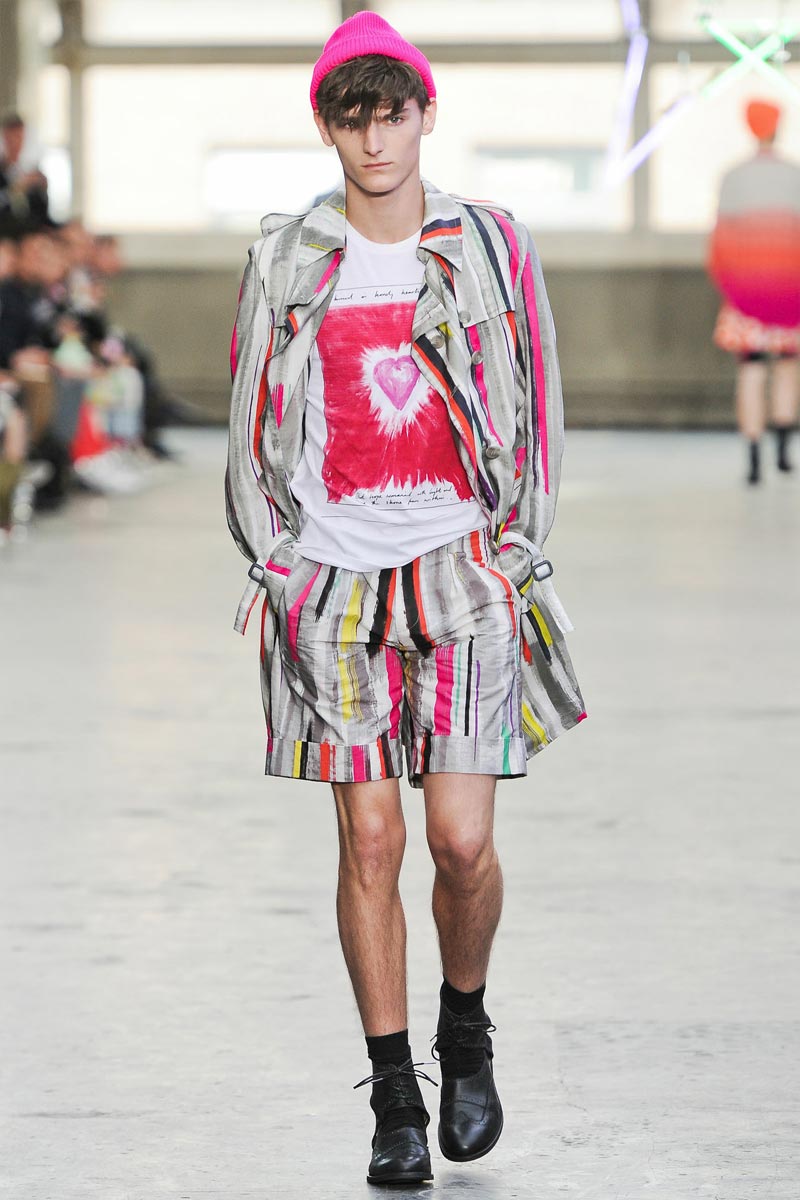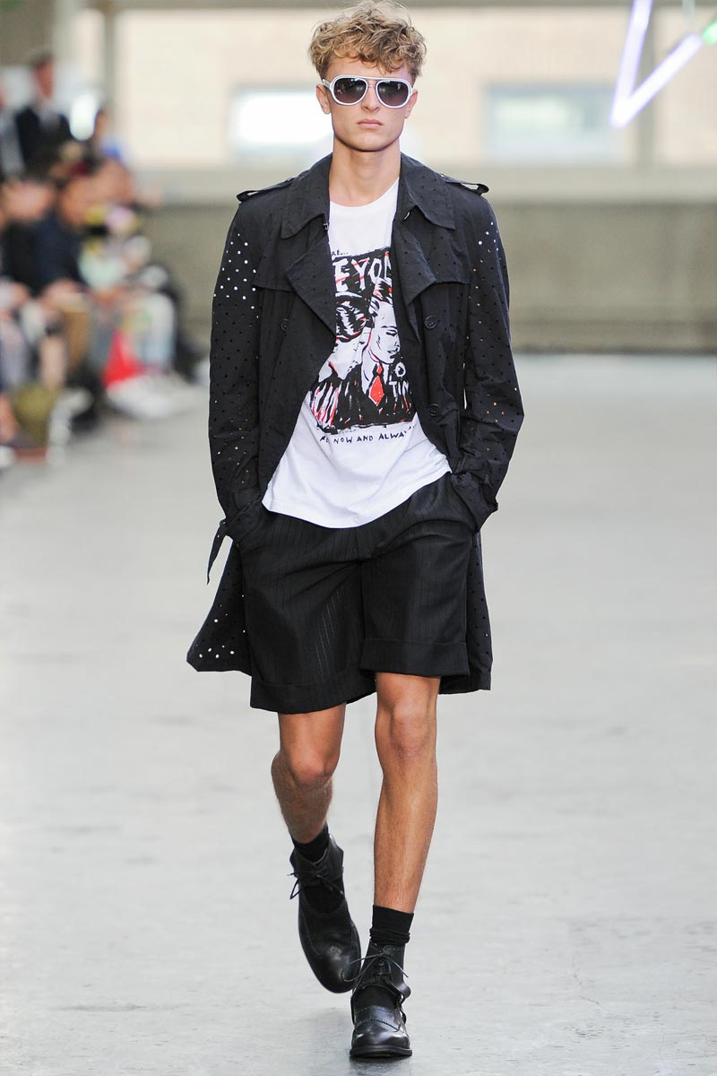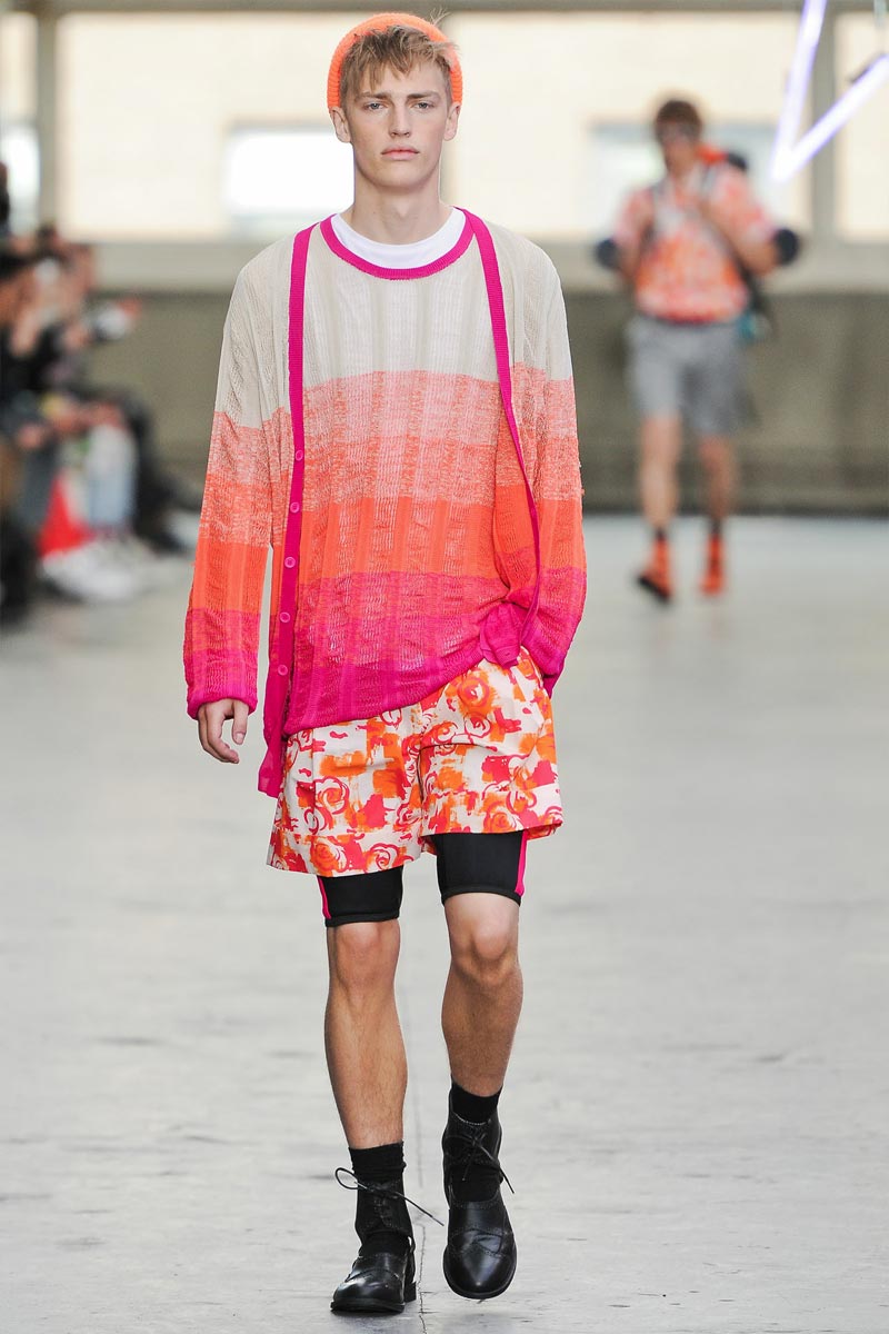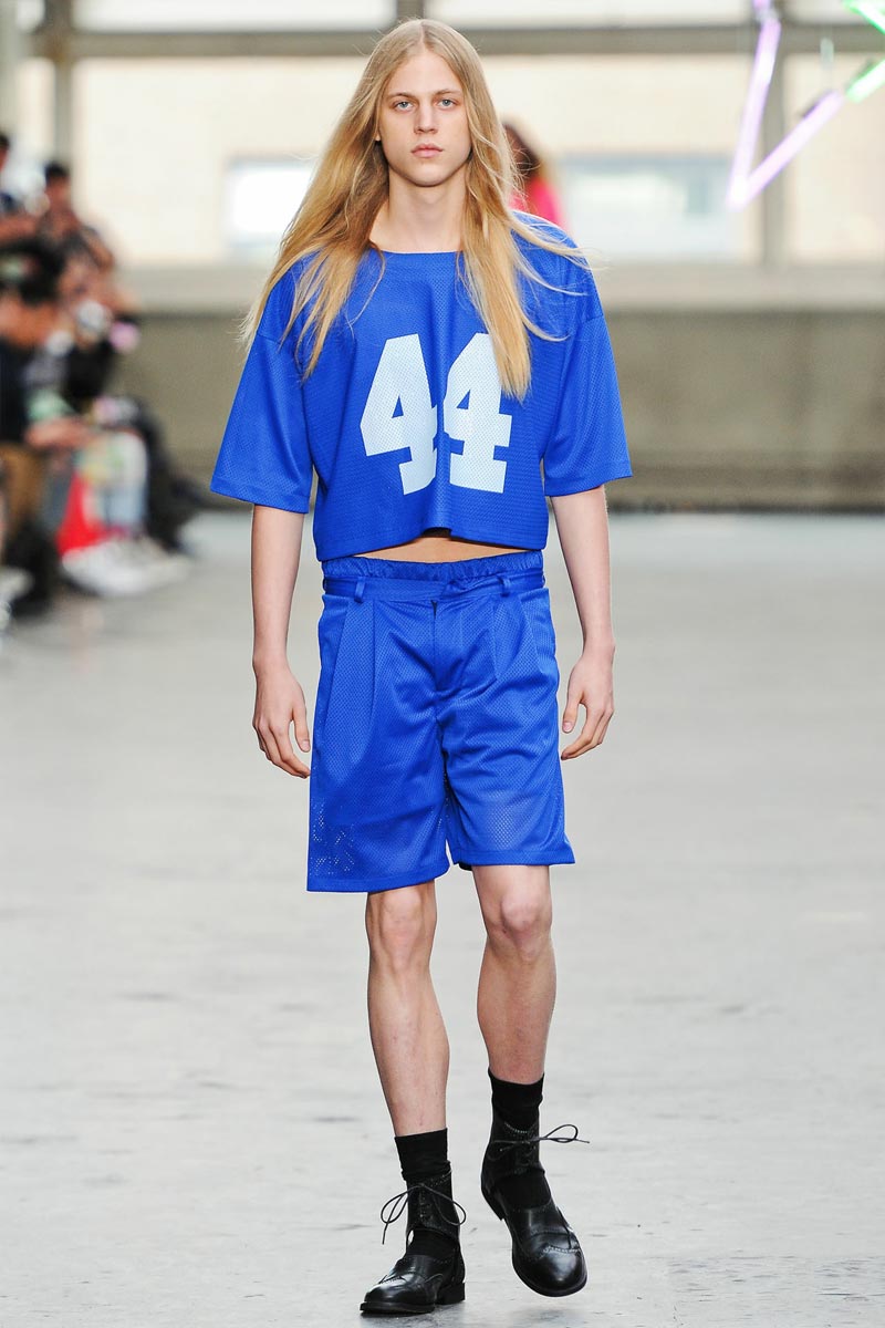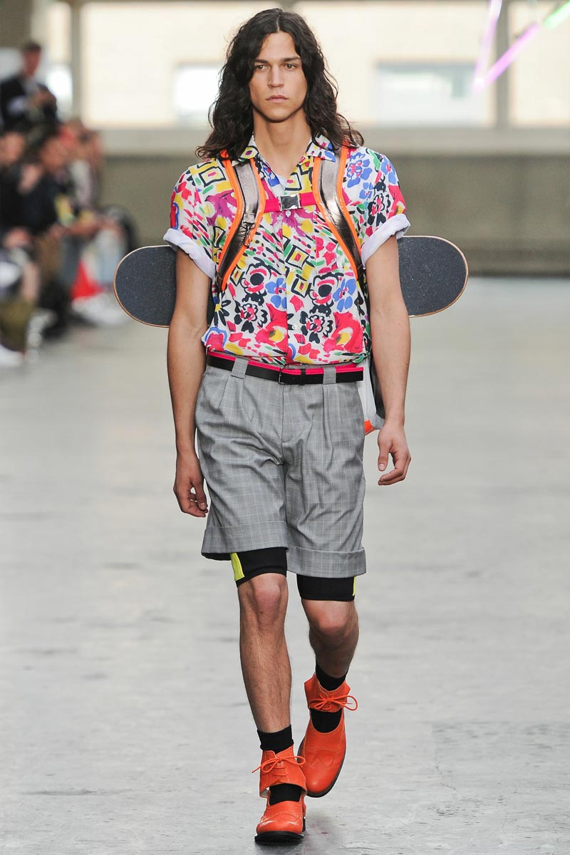 Kandinsky, football and fluor: what do these things have in common? Nothing – but that didn’t restrain fast fashion retailer TopMan from having them sent down a runway, in ubiquitous arty garments that were modeled by all the top coverboys. Victor Nylander’s lips be praised, as they never fail to distract from the drecktitude of a said collection!