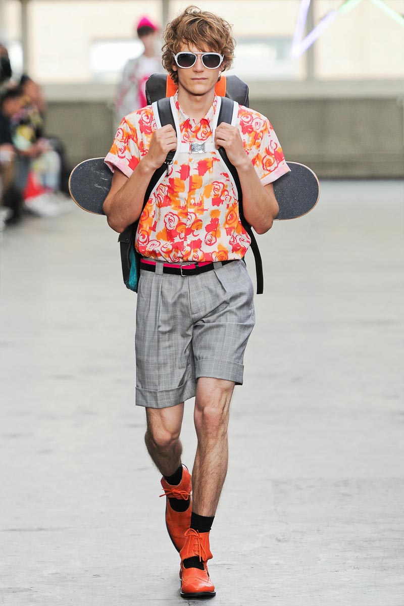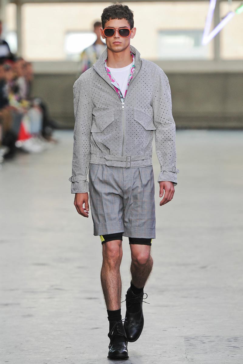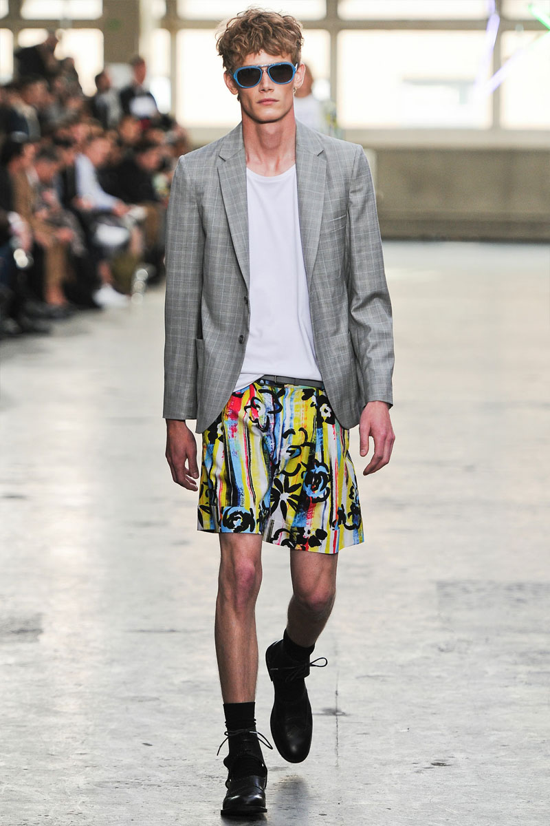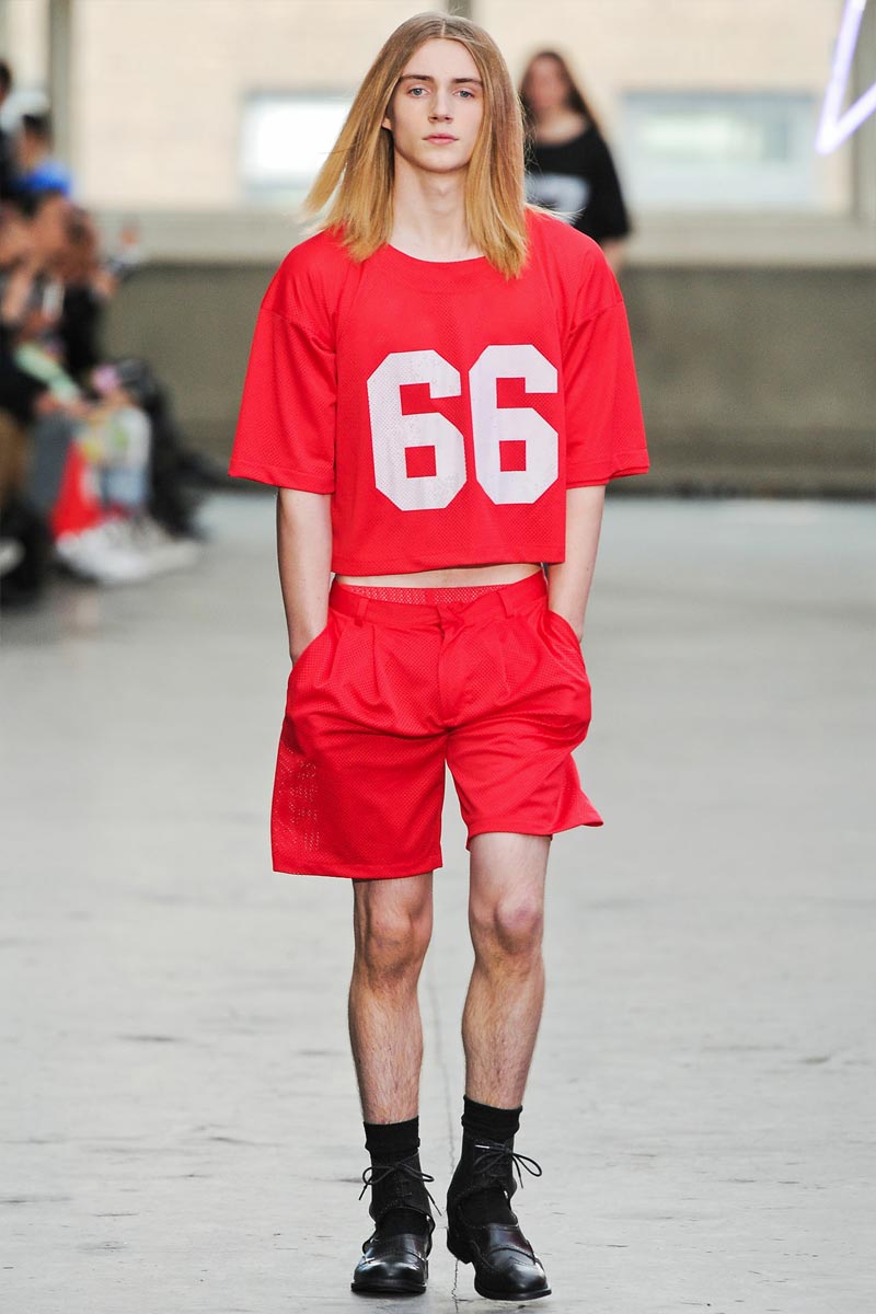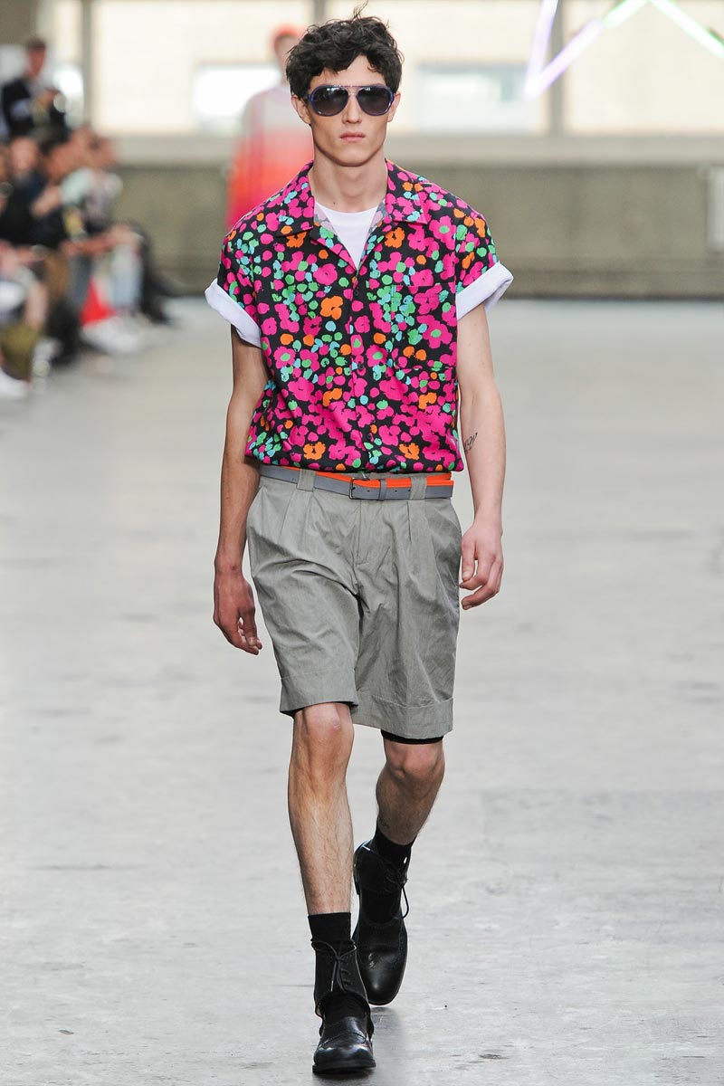 Kandinsky, football and fluor: what do these things have in common? Nothing – but that didn’t restrain fast fashion retailer TopMan from having them sent down a runway, in ubiquitous arty garments that were modeled by all the top coverboys. Victor Nylander’s lips be praised, as they never fail to distract from the drecktitude of a said collection!