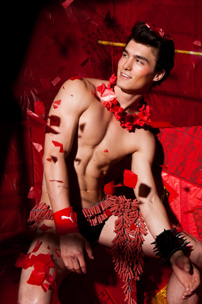 Surachai Saengsuwan is sharing with us his recent Degree magazine session inspired by Chinese art history, the Dragon Dance stars model T.J. Hugue clad in Puma by Book Kositphasaj.