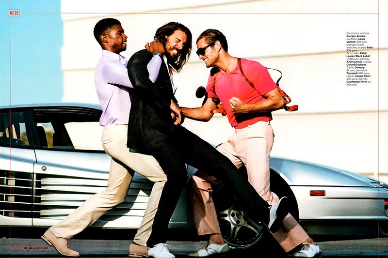 Broderick Hunter, Mark W and Milan Krouzil shot by Tony Kelly and styled by Peter Cardona for the June 2012 issue of GQ Italia.