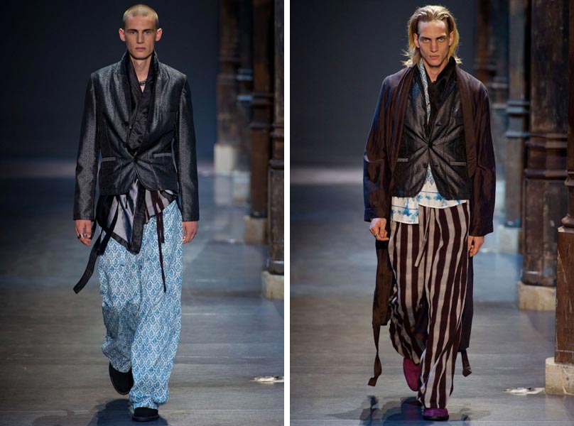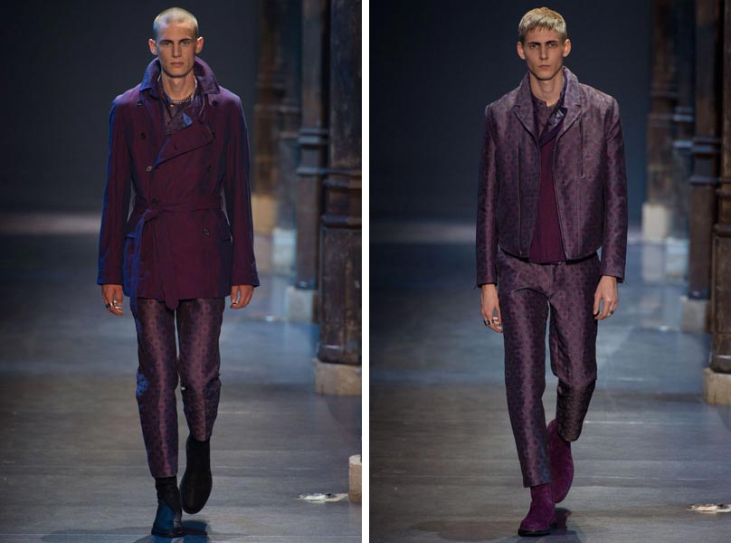 Ann Demeulemeester‘s Spring/Summer 2013 runway show was full of oranges, blues, and violets. Ann continues her obsession with the modern dandy.