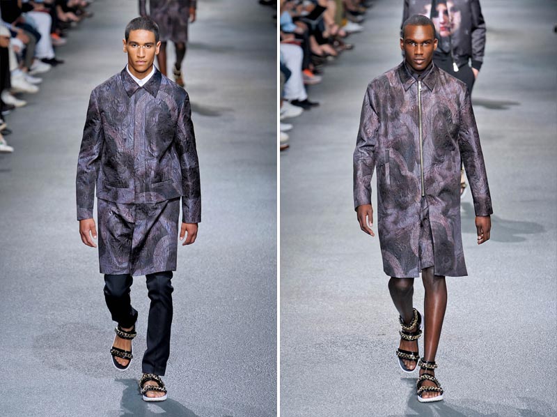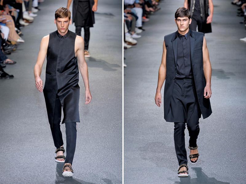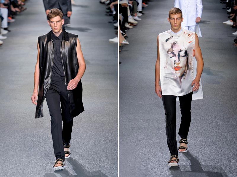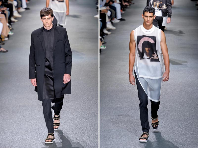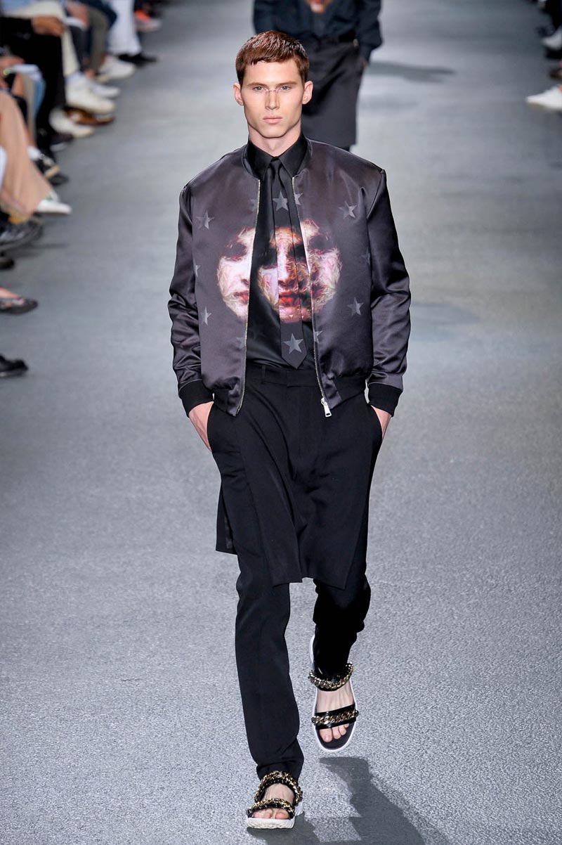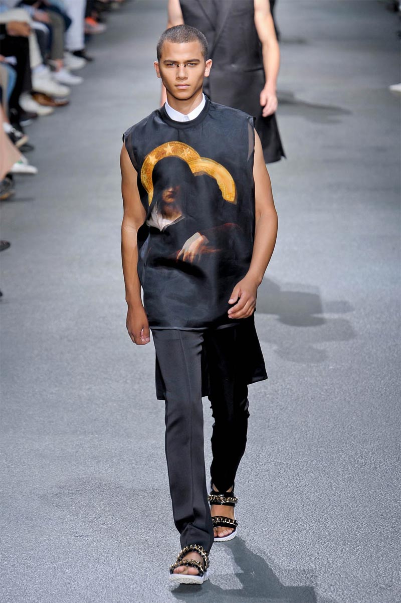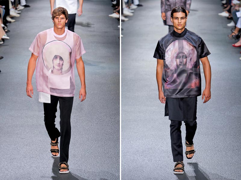 Riccardo Tisci presented a Spring/Summer collection for Givenchy inspired by both sex and religion, featuring beautifully soft prints, lengthened silhouettes and pale pink as the colour focus. Tailoring played a significant role in the collection.