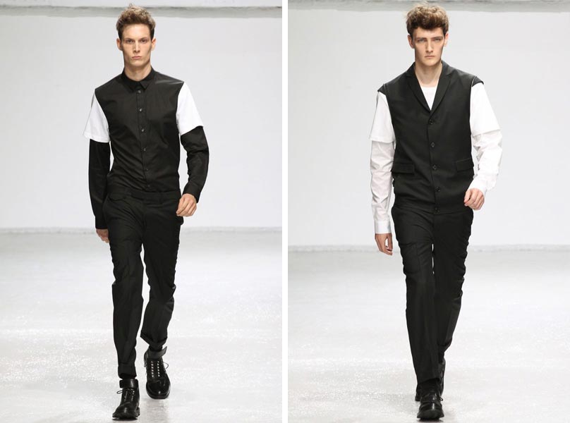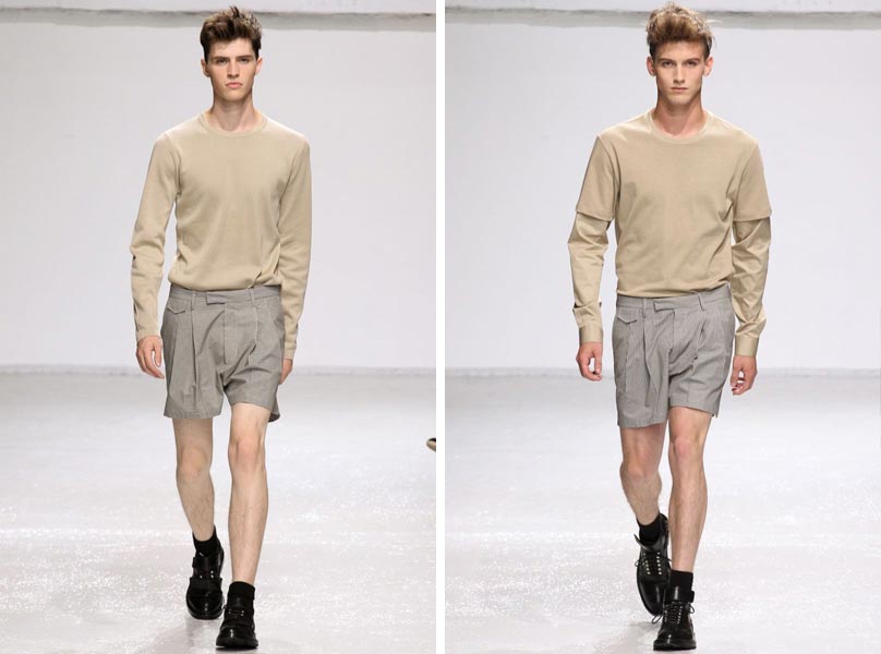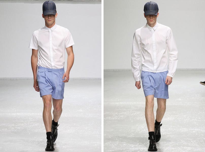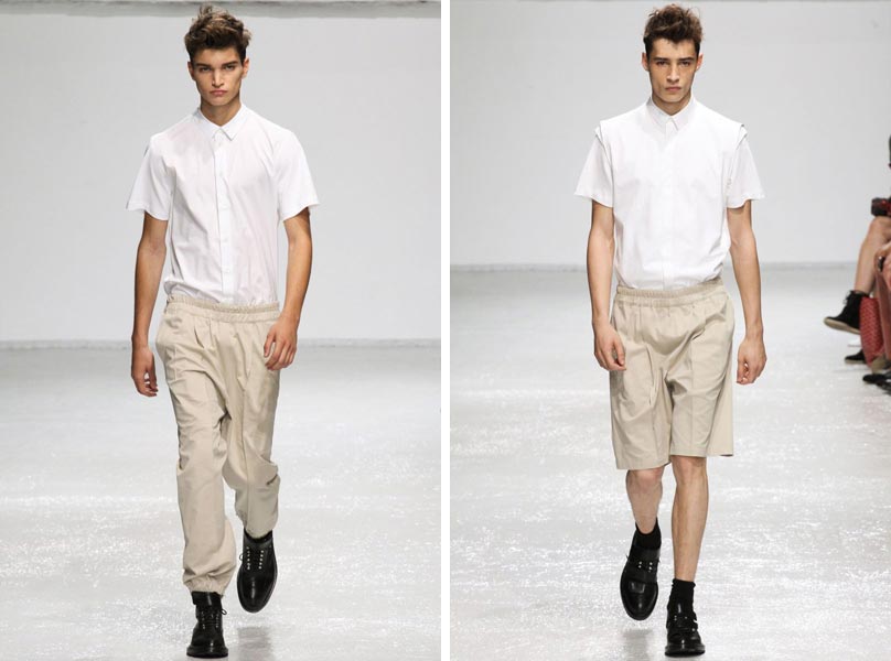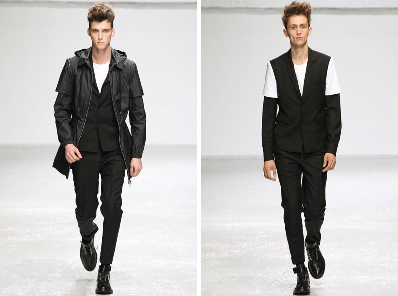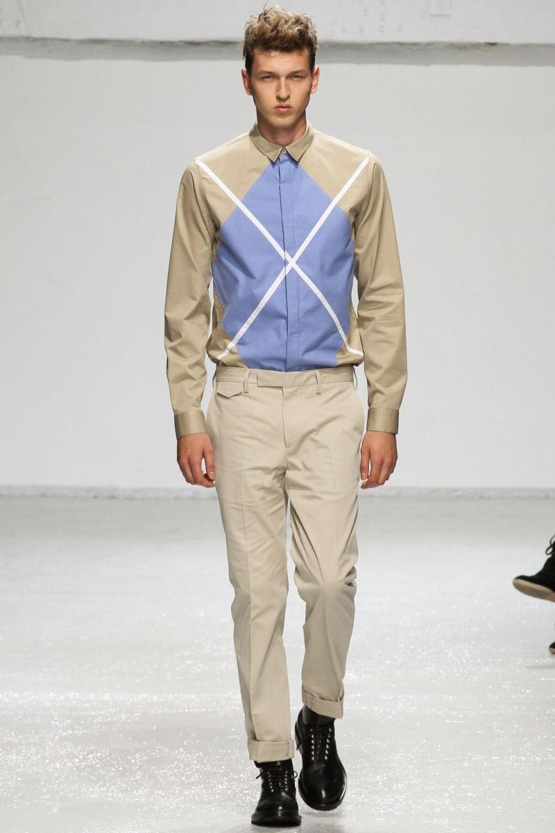 Playing with the status of t-shirt, pulling it in different directions, Kris presented a relaxed tailoring and an urban design.
