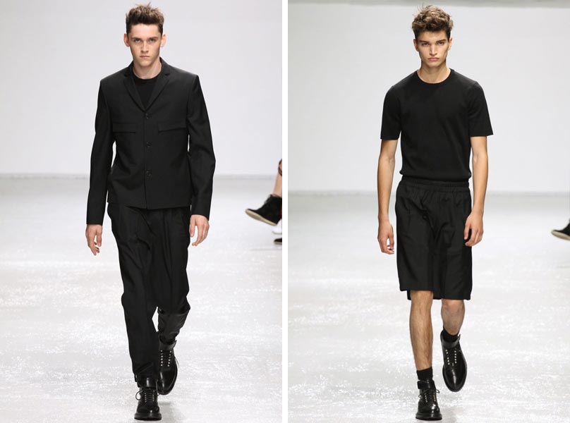 Playing with the status of t-shirt, pulling it in different directions, Kris presented a relaxed tailoring and an urban design.
