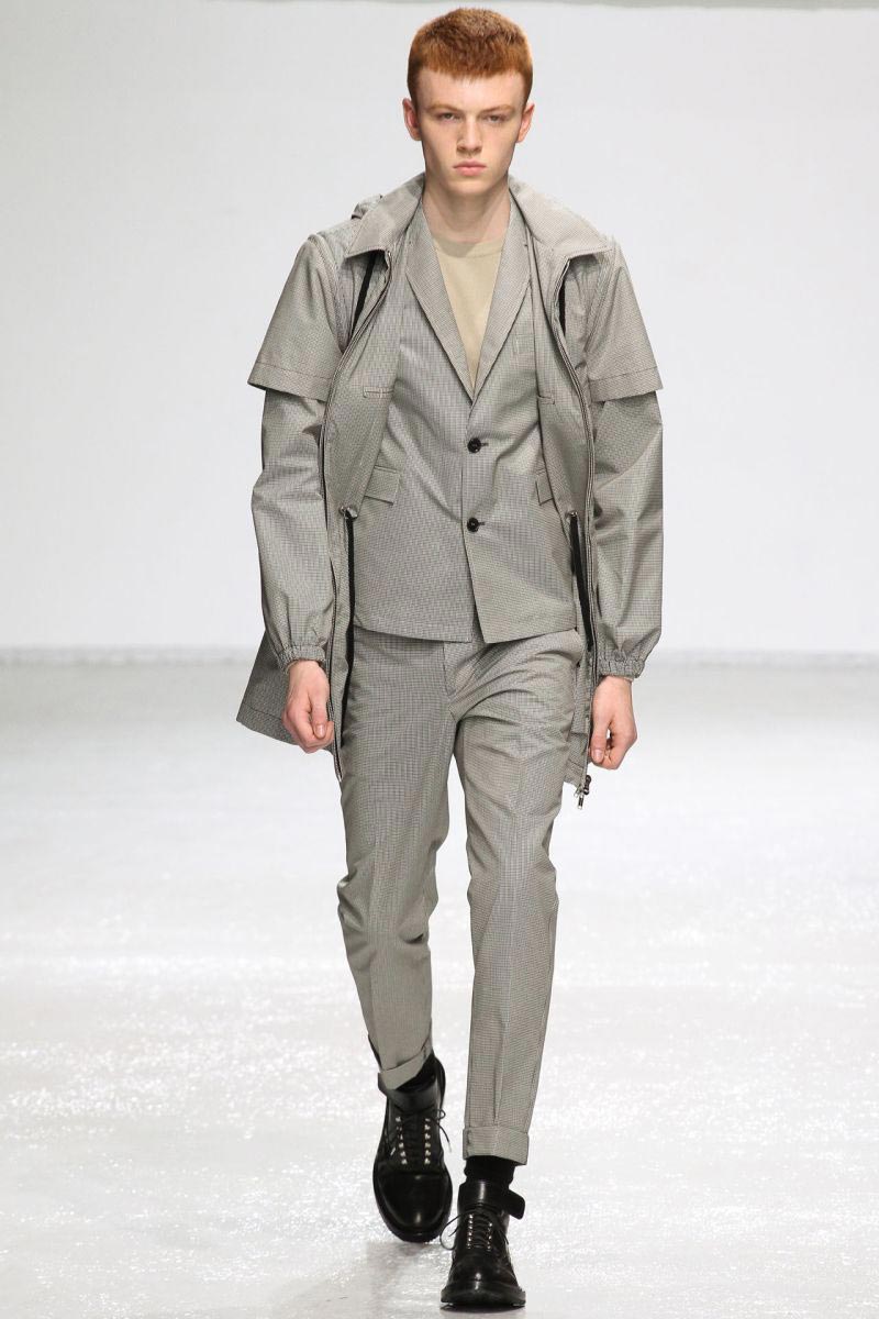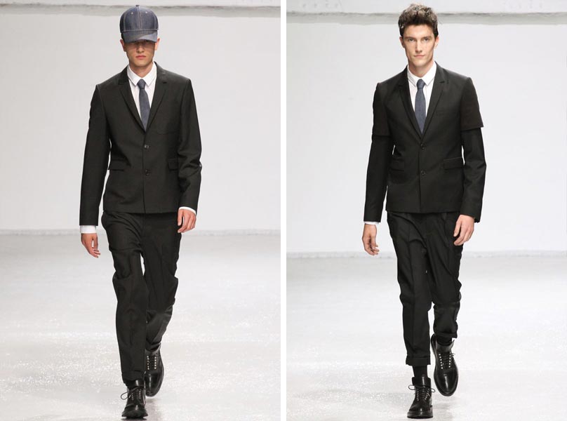 Playing with the status of t-shirt, pulling it in different directions, Kris presented a relaxed tailoring and an urban design.
