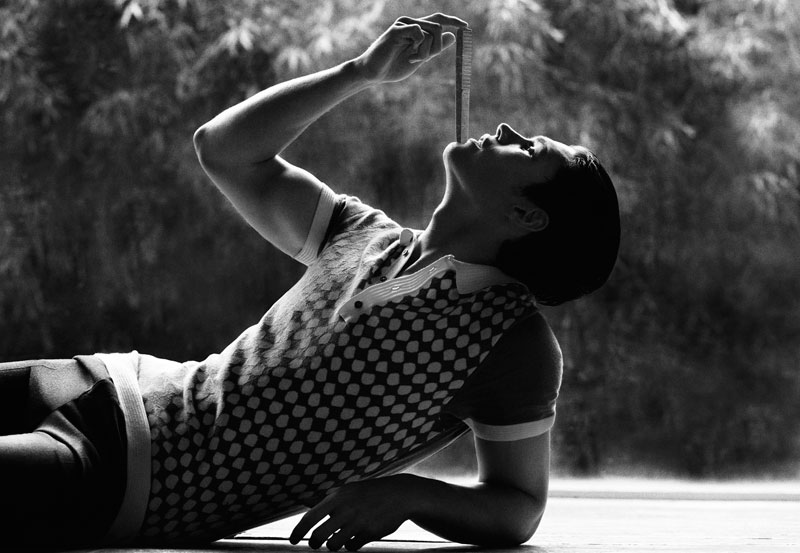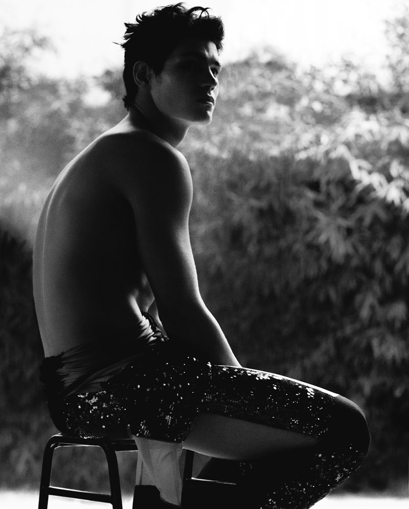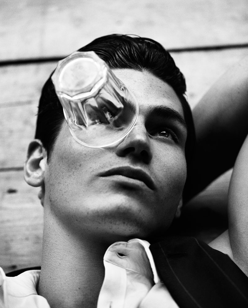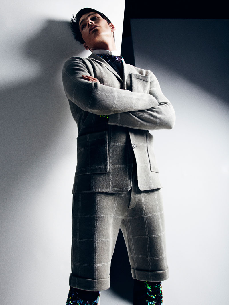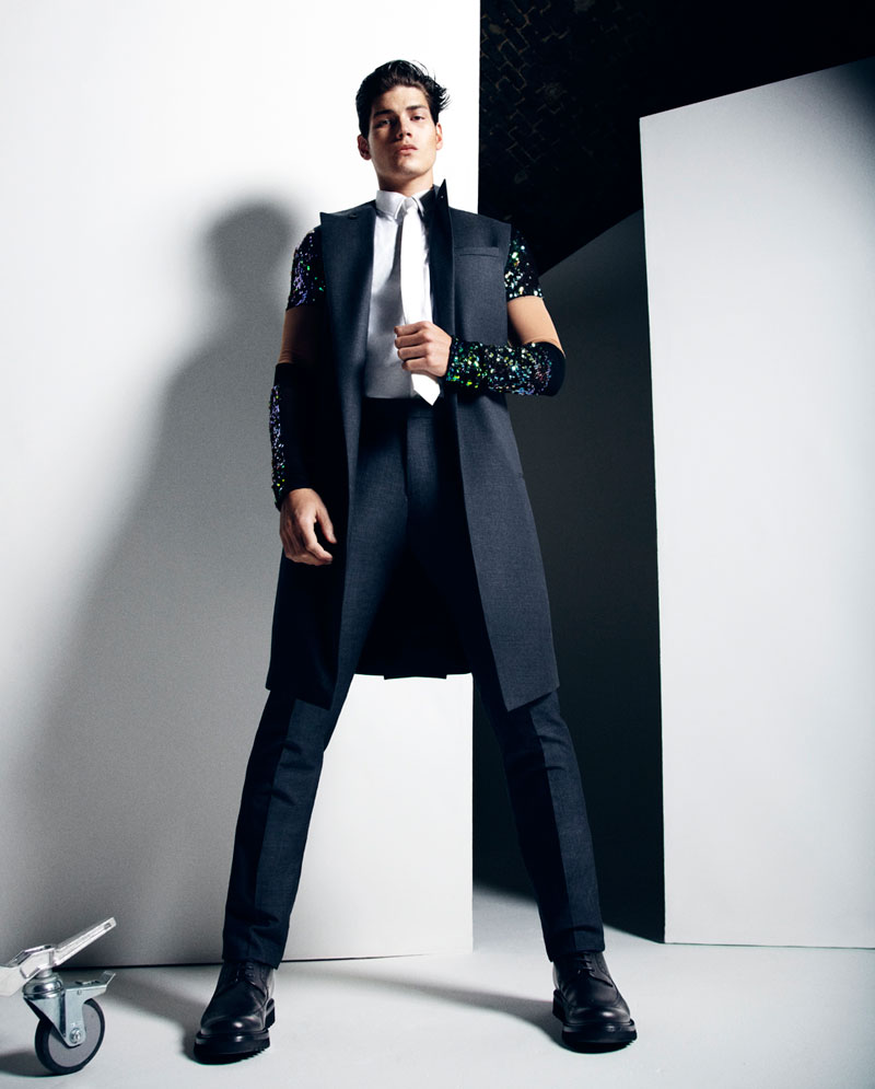 Sam Way photographed by Paul Scala in “Way off course” for Manuscript Magazine features labels including Mugler, Z Zegna, Kenzo, Dior Homme and Kris Van Assche.