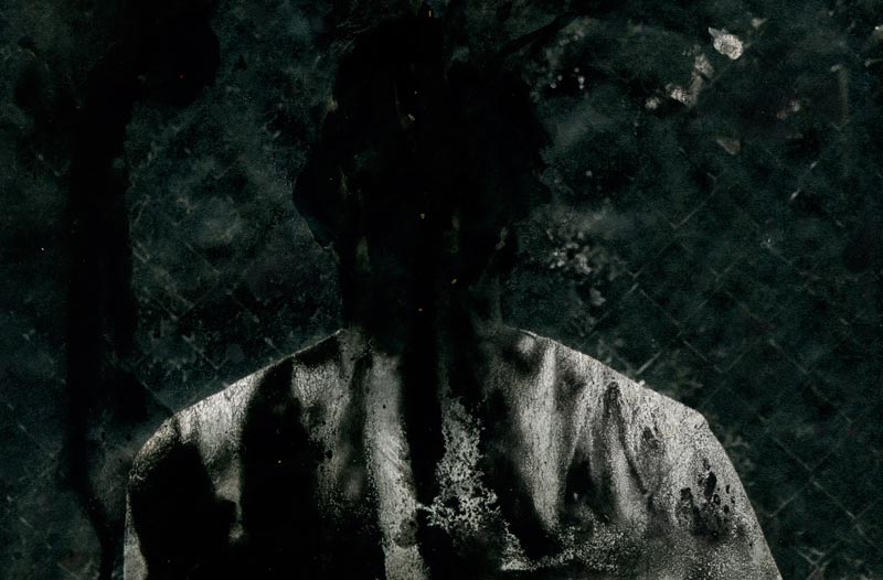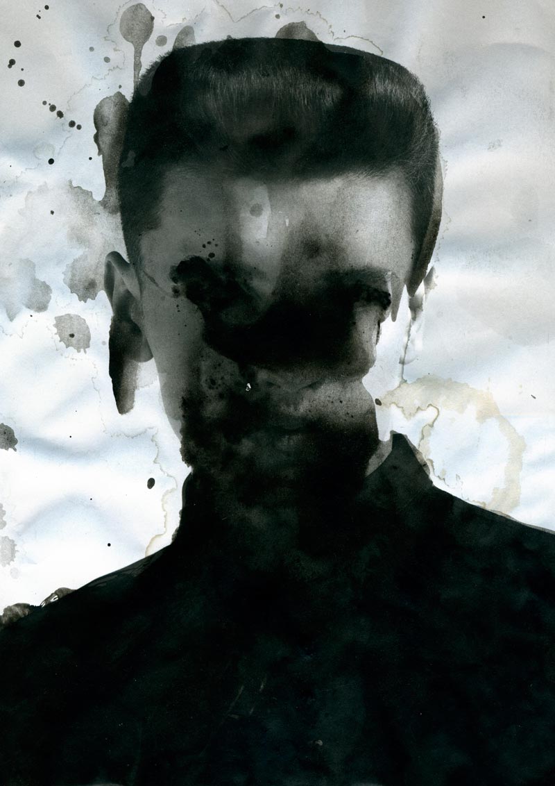 The sterility of the photoshopped male ‘prototypes’ dissolves behind dark washes and is soiled by organic structures- the computer-optimized image finding it’s way back to being analogous, and one of a kind.