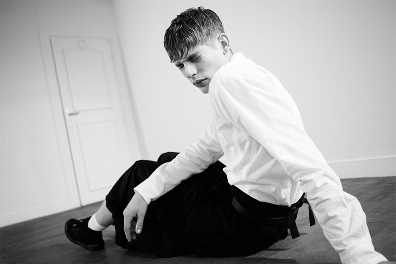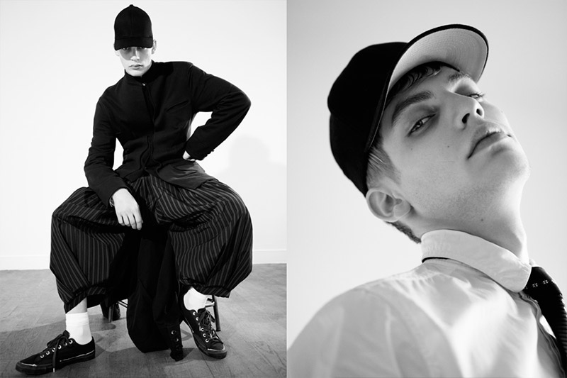 Baptiste Radufe shot by Alessandro Dal Buoni and styled by Mauricio Nardi with pieces by Yohji Yamamoto.