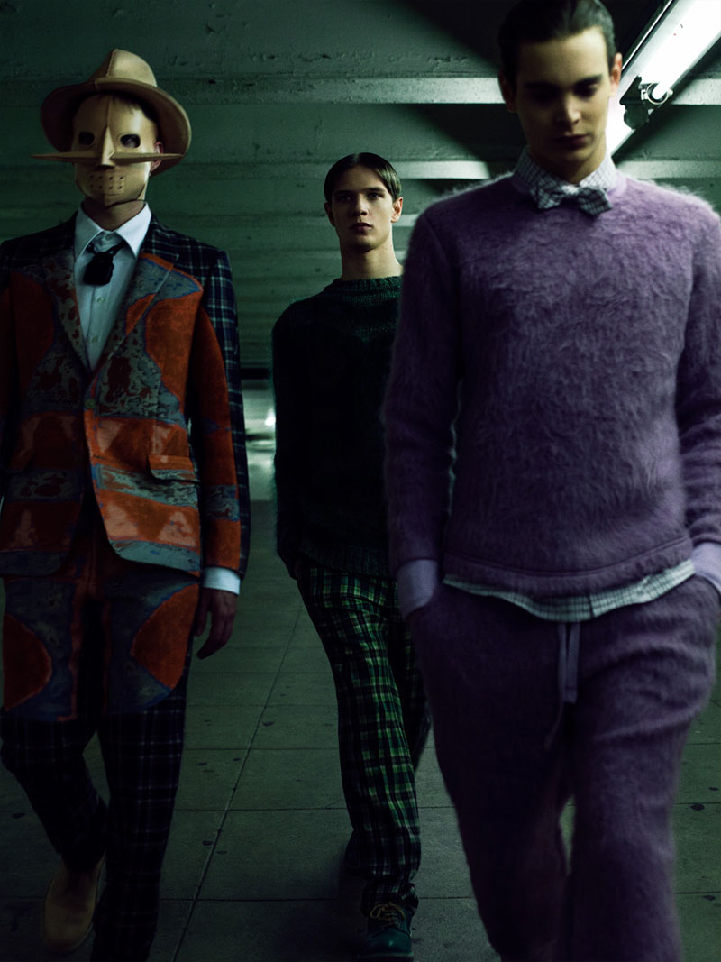 Mitch Baker, Loammi Goetghebeur and Thierry Lecomte shot by Conan Thai and styled by Raul Guerrero with pieces from Walter Van Beirendonck’s Fall/Winter 2012 collection for Fiasco Homme‘s latest issue.