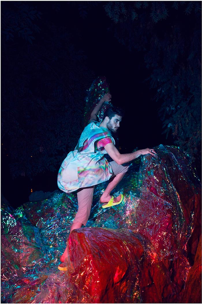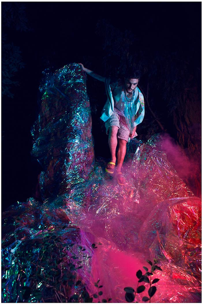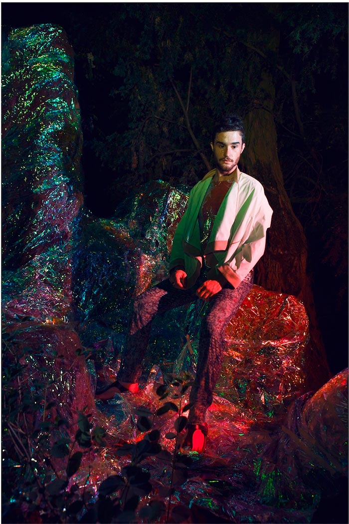 By adding sports elements, and integrate the acid colours in details, with the transparent plastic layers and the almost unnatural shine, I wanted to create a familiar, comfortable, yet artificial atmosphere.