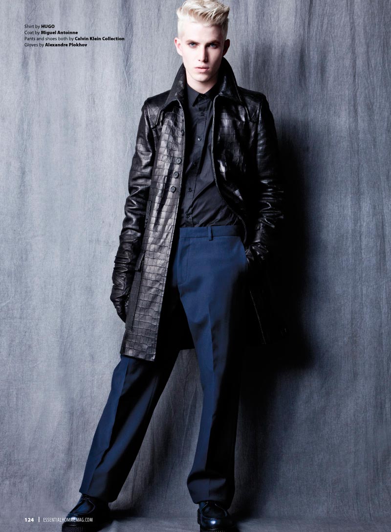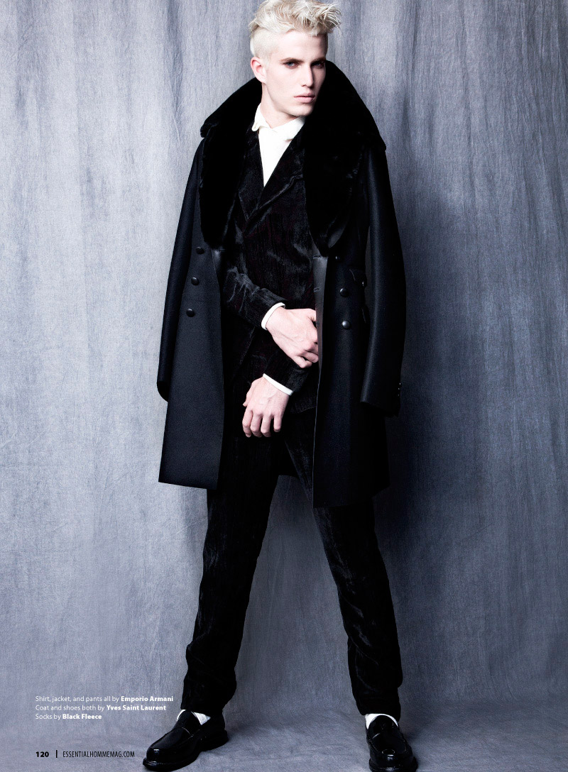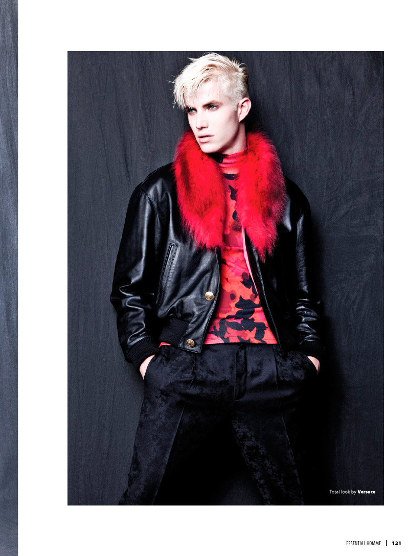 Conor McLain photographed by Eli Schmidt and styled by Ryan Davis with pieces of Versace, Marlon Gobel, John Varvatos, Diesel, Hugo Boss and more, for the latest issue ofEssential Homme.