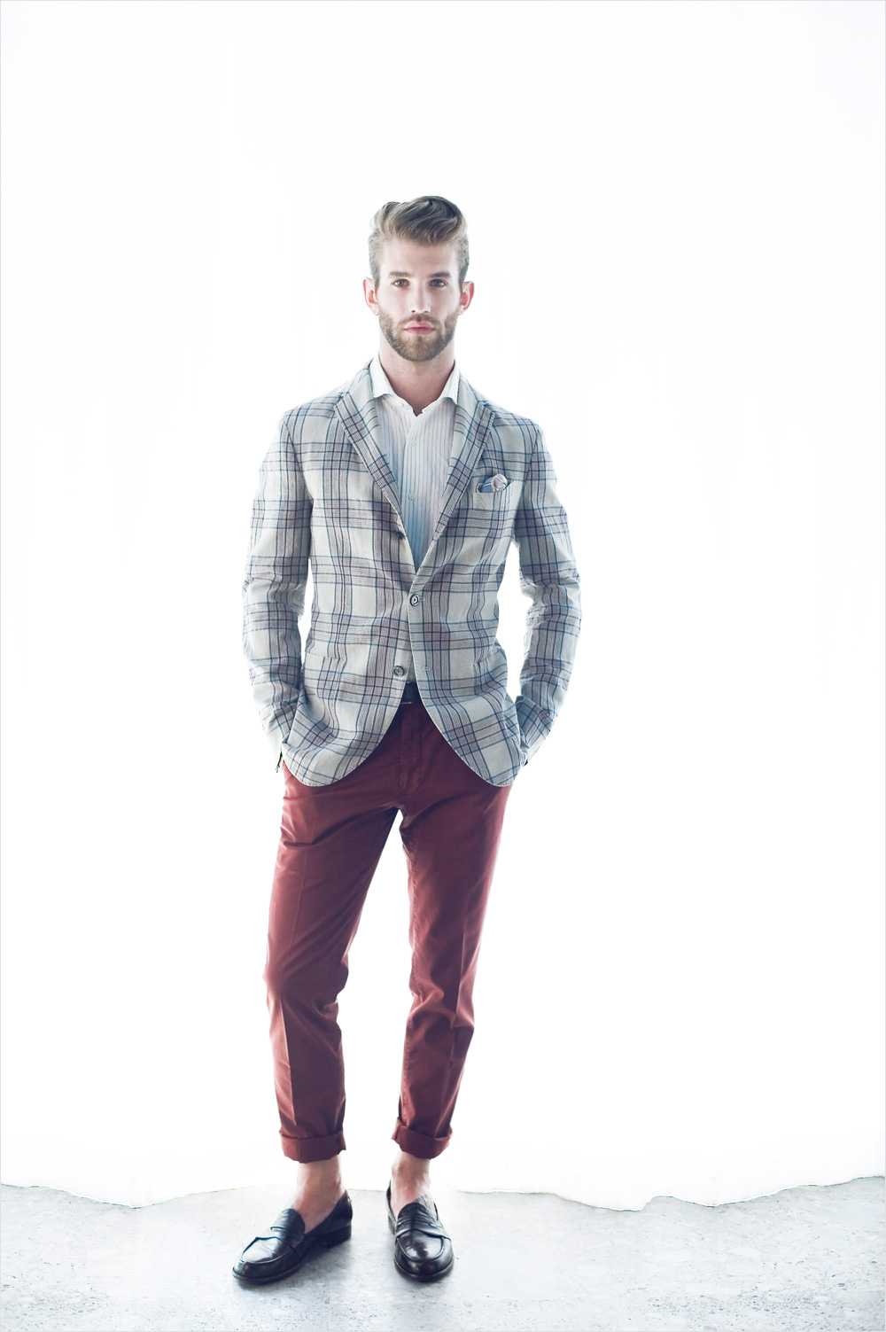 Model André Hamann at Beatrice enlisted to pose for the elegant Boglioli spring summer 2013 lookbook session.