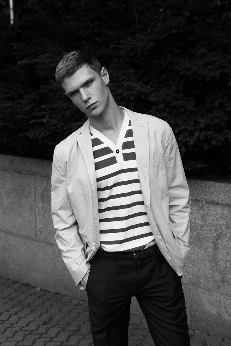 Model Stefano Marshall is photographed in Milan by Chuck Thomas in a timeless black-and-white fashion editorial exploring modern masculinity, form, and mood.