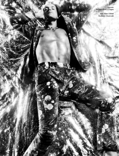 The 18th issue of Schön! magazine features models Alexander Nikolaevich Zhembrovskyy, Jared Rainford Wright, and Troy Tarquin in the story ‘The Opalescences’, photographed by Paul Scala and styled by Sonny Groo.