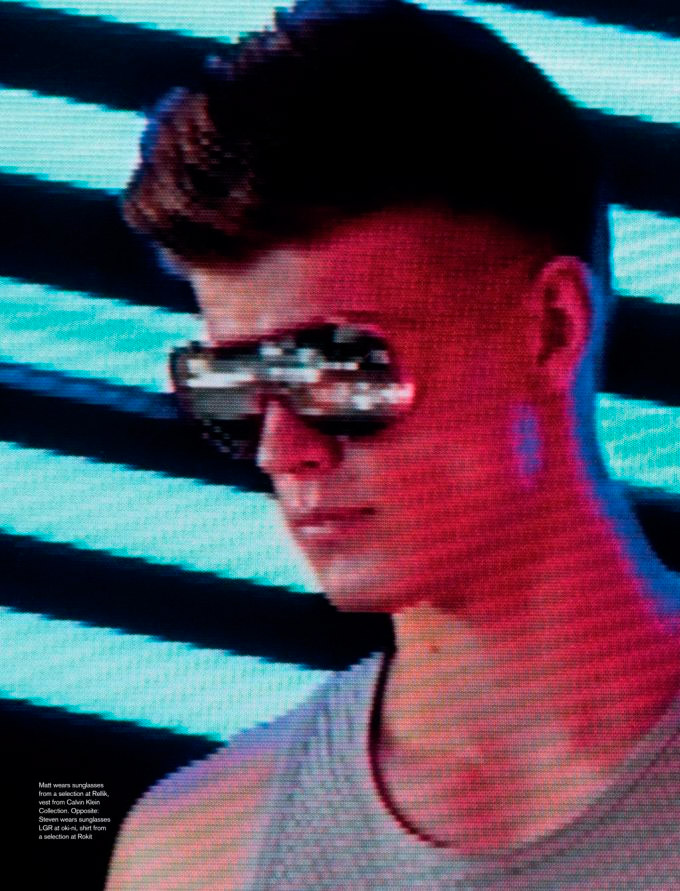 Matt Woodhouse and Steven Chevrin photographed by Alastair Strong and styled by Elauan Lee with pieces from Dolce&Gabbana, Louis Vuitton, Calvin Klein Collection and more, for the August 2012 issue of Attitude magazine.