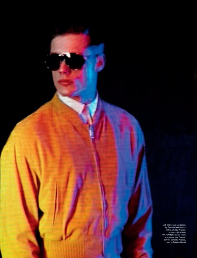 Matt Woodhouse and Steven Chevrin photographed by Alastair Strong and styled by Elauan Lee with pieces from Dolce&Gabbana, Louis Vuitton, Calvin Klein Collection and more, for the August 2012 issue of Attitude magazine.